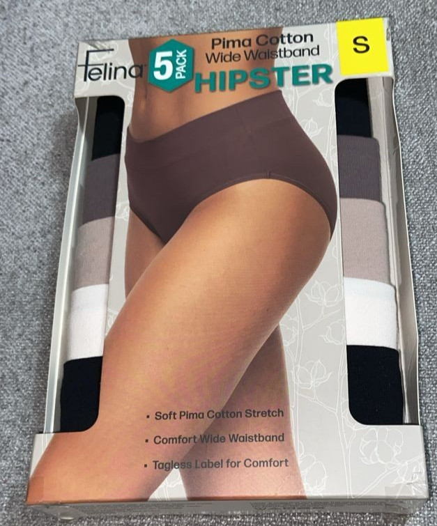 как выглядит Felina Womens 5Pack Pima Cotton Wide Waistband Hipster, Multicolor, S E14/18 фото