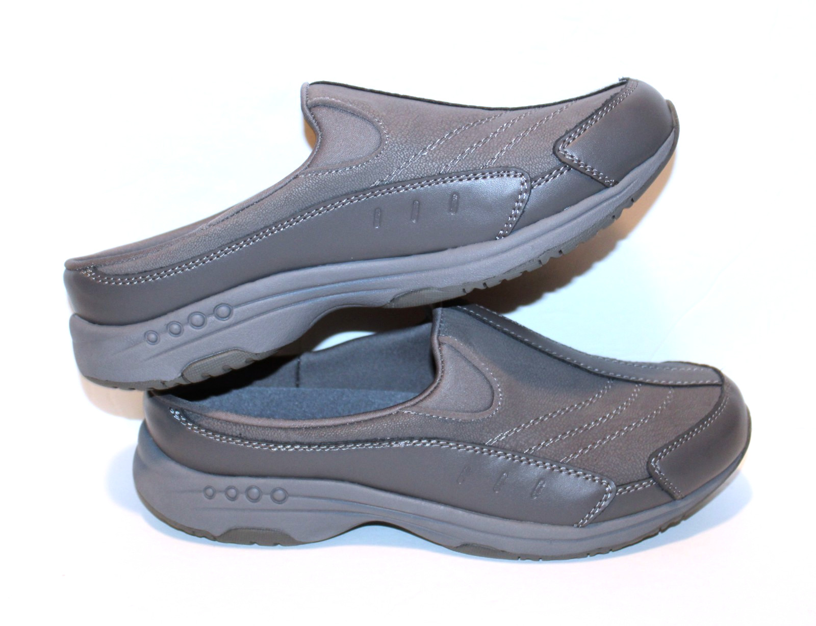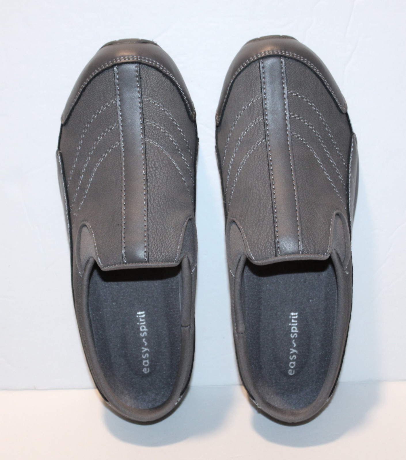 как выглядит Easy Spirit Womens 8.5 M Traveltime Gray Leather Slip on Clog Shoe фото