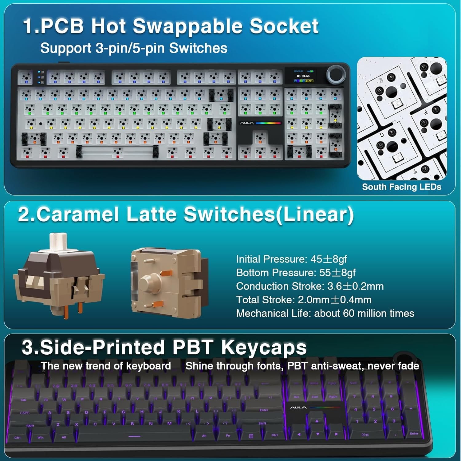 AULA Mechanical Keyboard Wireless / Wired Gaming Keyboard Computer Hot Swappable