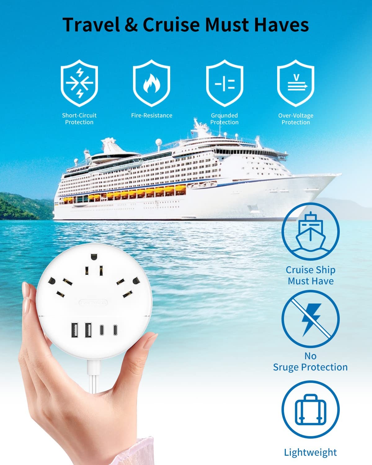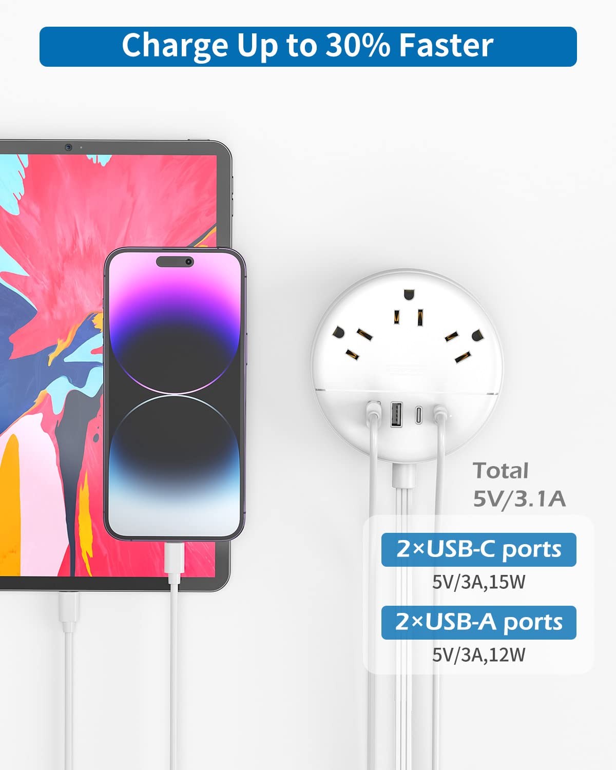 Flat Extension Cord 5 Ft Flat Plug Power Strip With 3 Outlets 4 Usb Ports2 Usb
