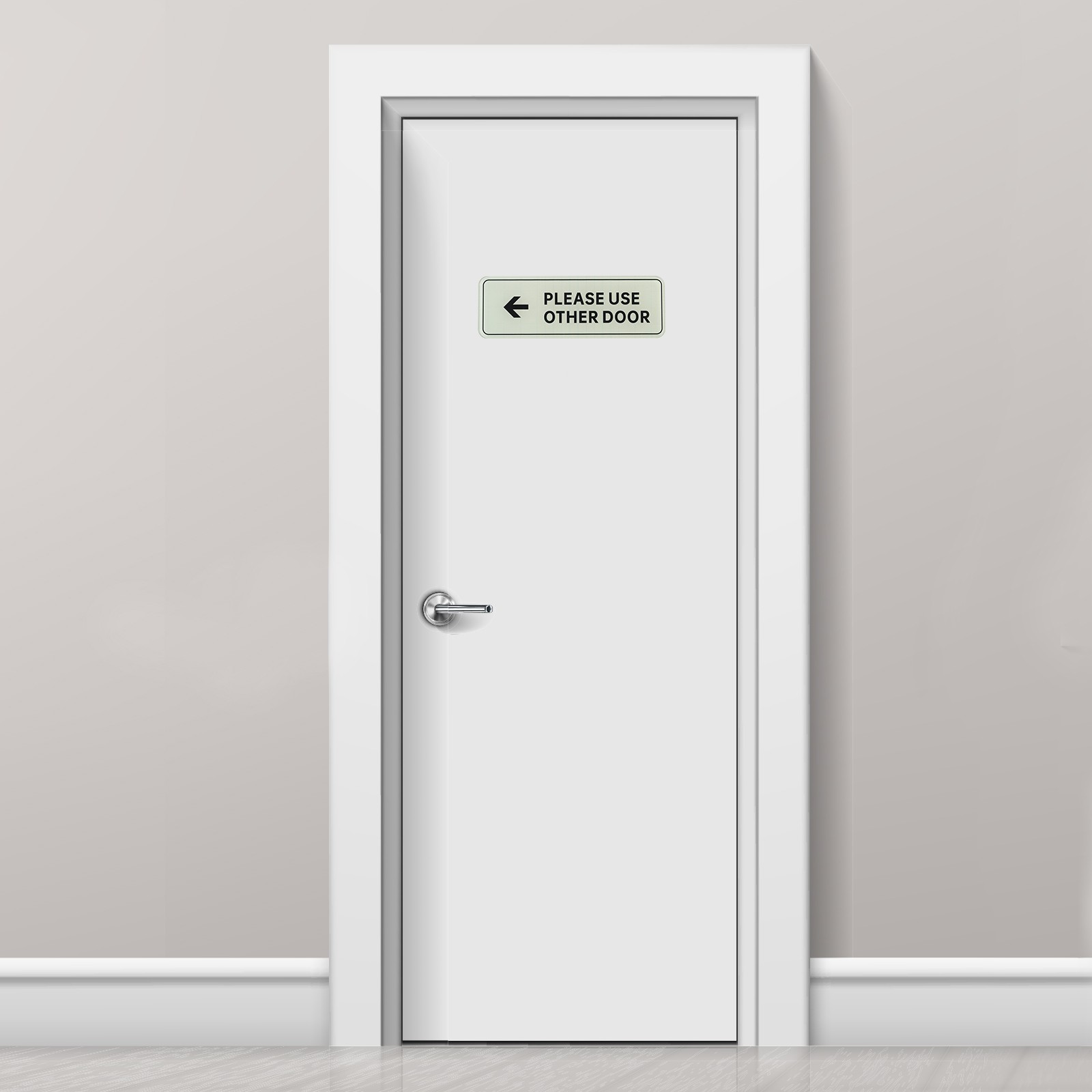 как выглядит Please Use Other Door Left Arrow Sign, Acrylic 9"x3" Silver фото
