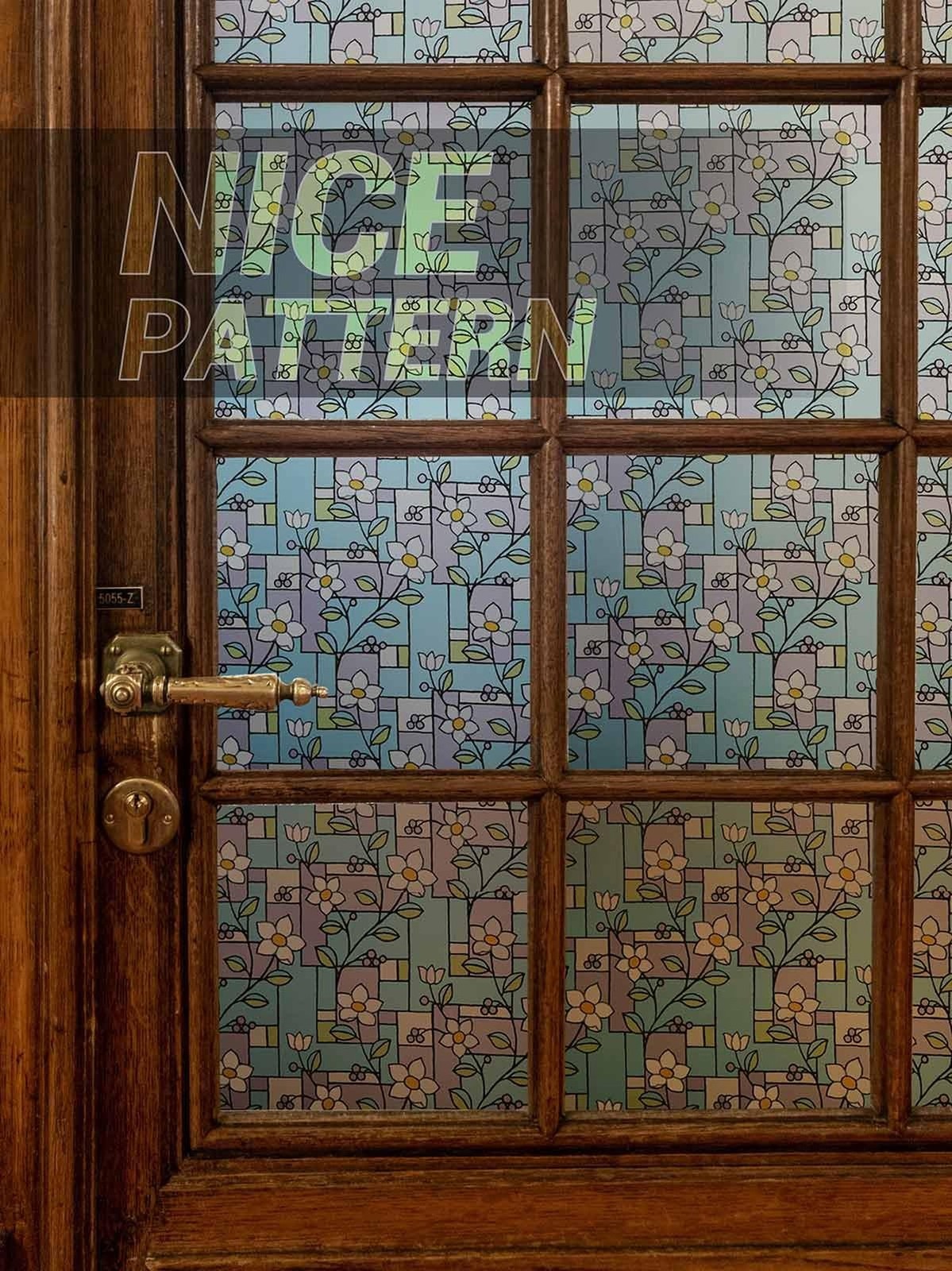 как выглядит VSUDO Frosted Privacy Window Film, Frangipani Flower Pattern, Privacy Protect... фото