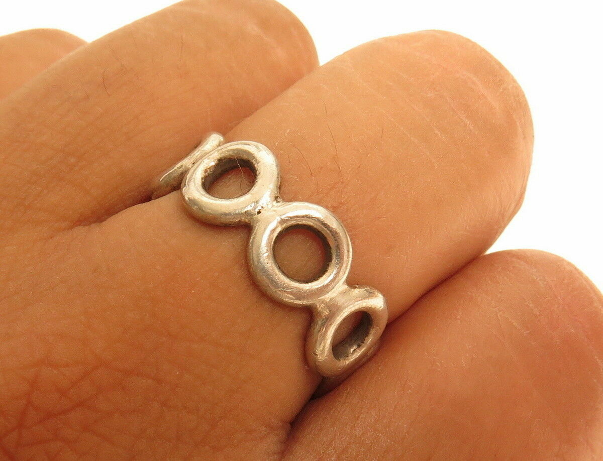 Beautiful 8mm Wide Solid Sterling Silver 925 Linked Circles Ring Band Sz9 F535