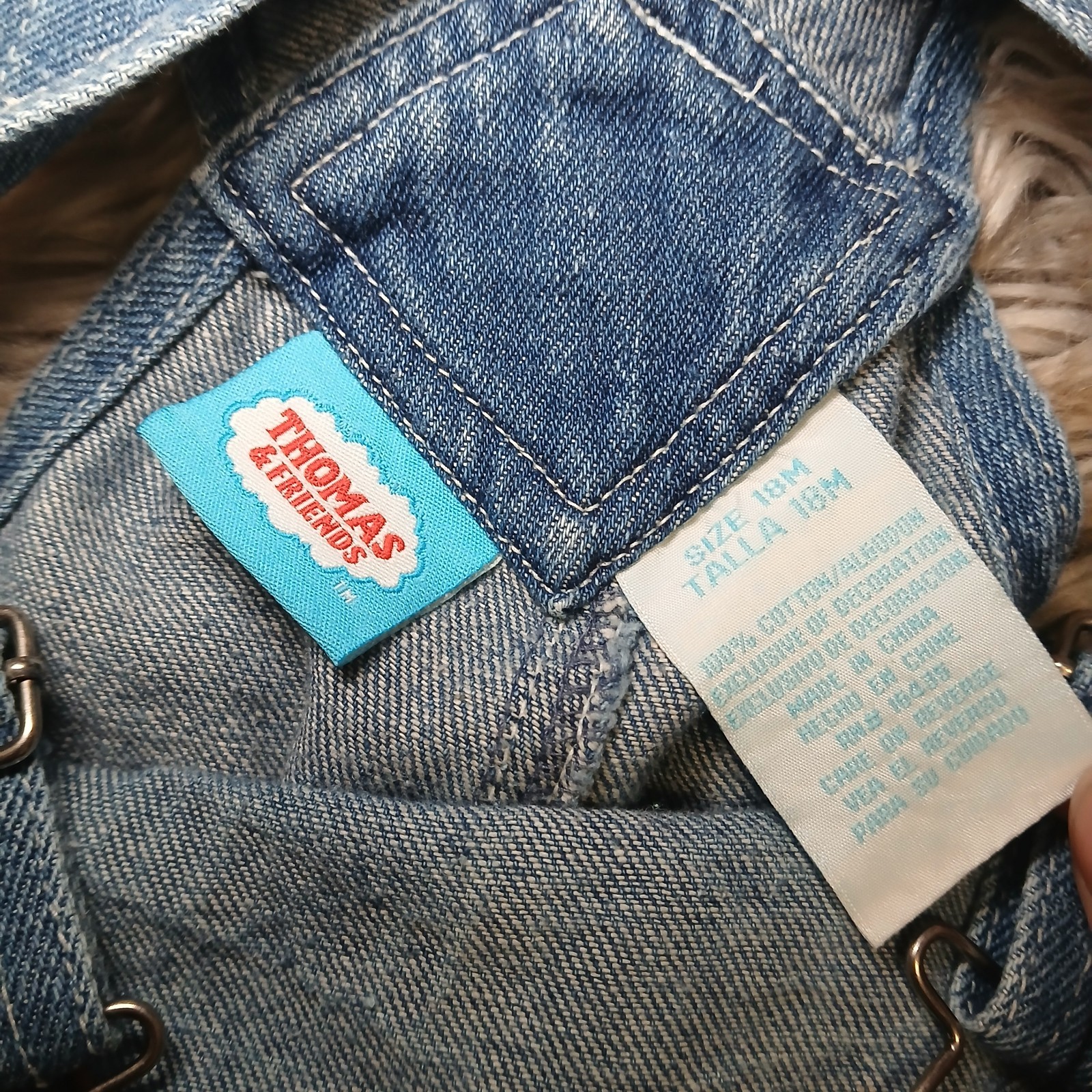 Thomas Friends Toddler Boys Denim Overalls Shortalls Train Jean Romper 18M Y2K