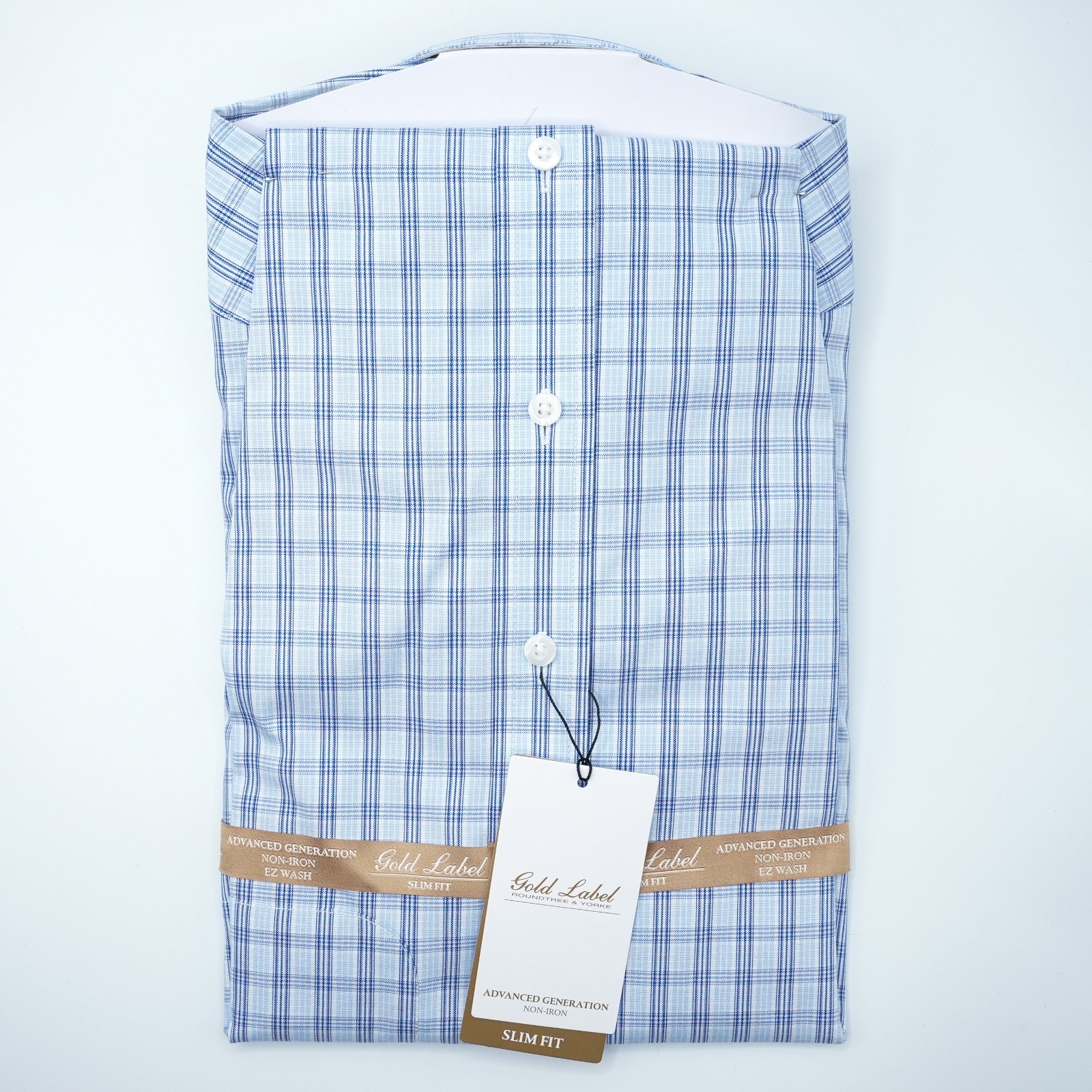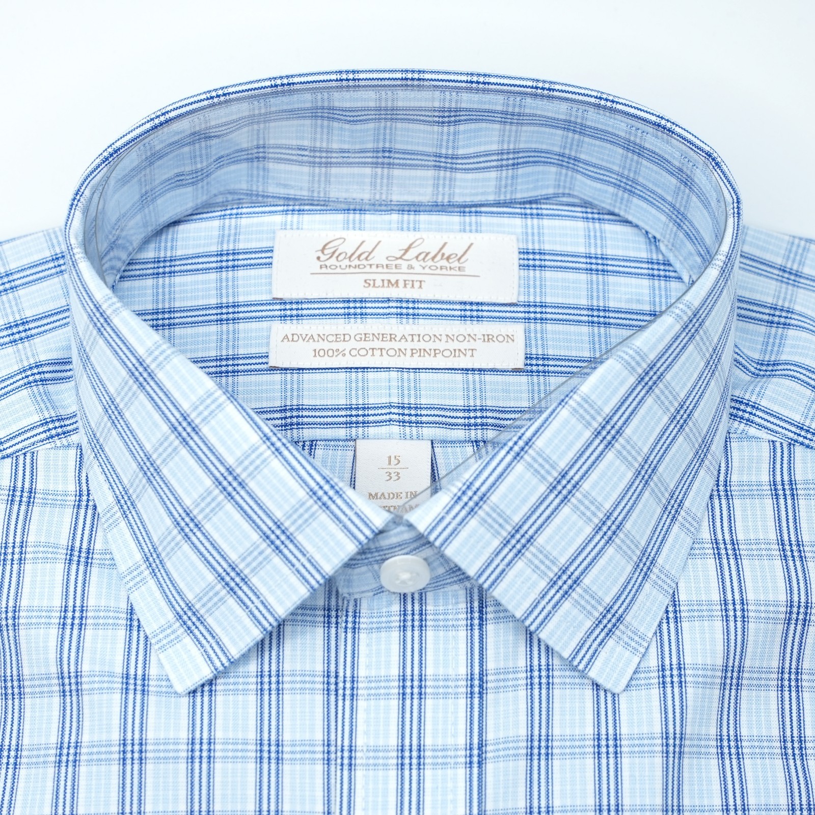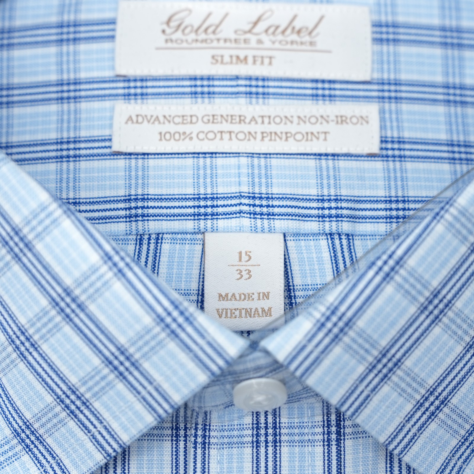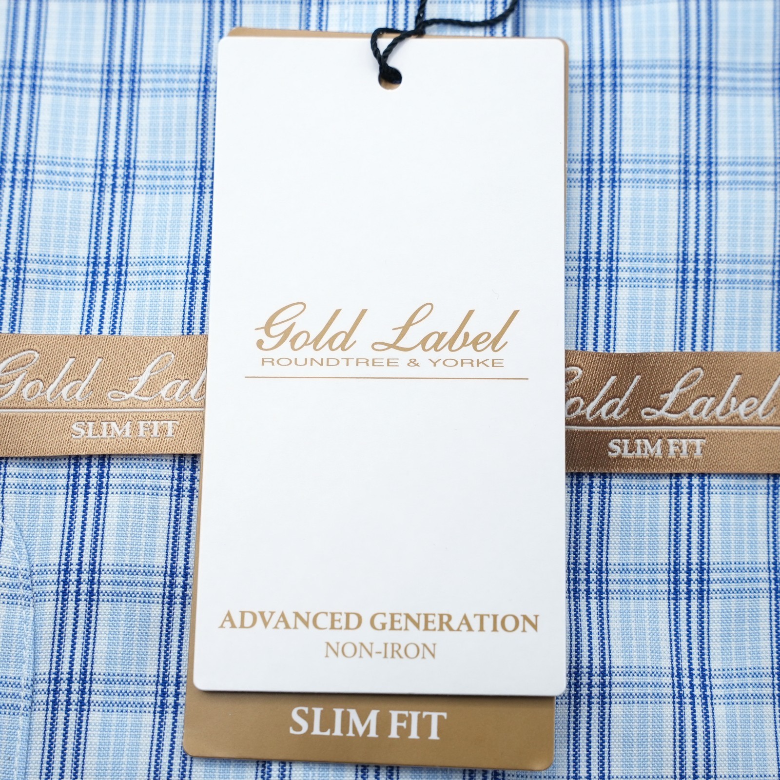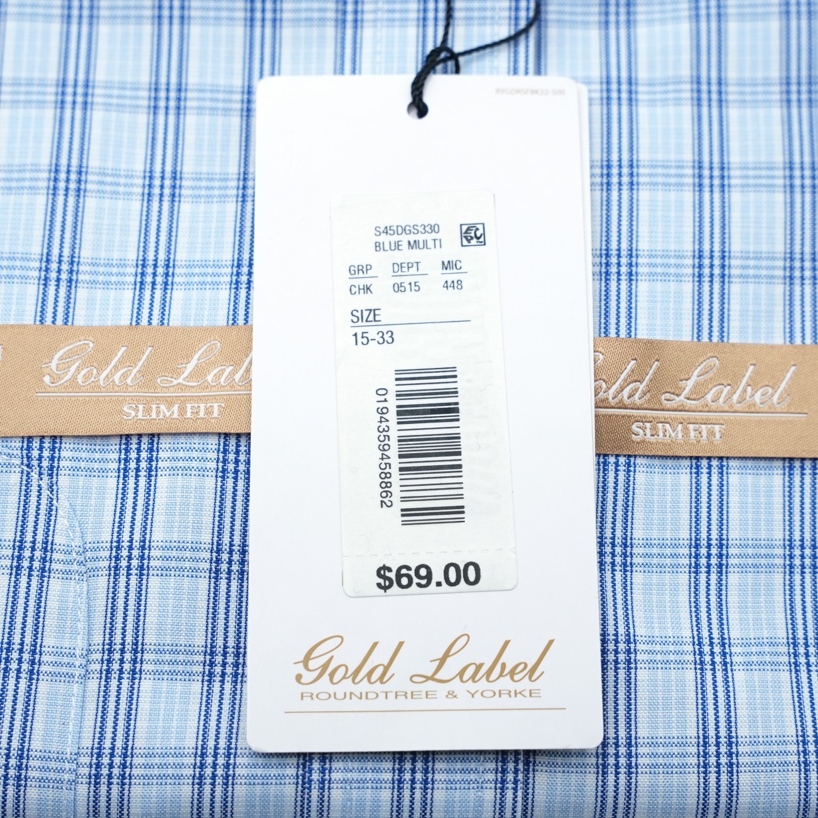 Roundtree Yorke Gold Label Dress Shirt 15-33 SLIM FIT Blue Check Non-Iron NWT