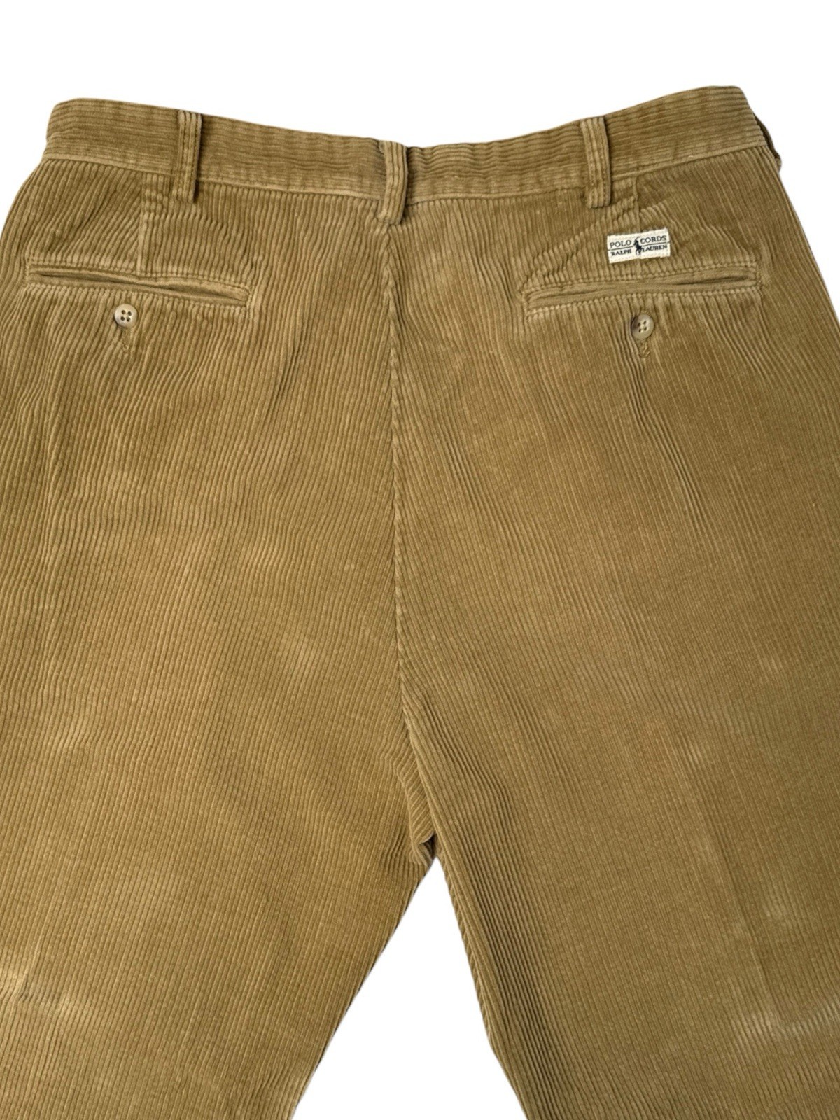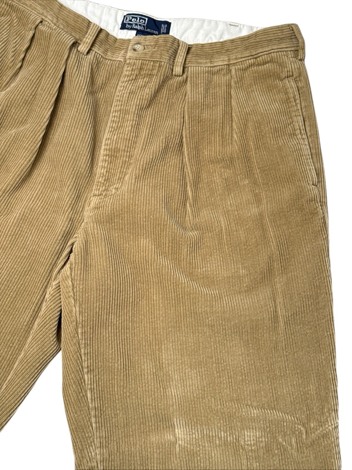 Polo Ralph Lauren Corduroy Andrew Pants Men's 36x30 Khaki Pleated Preppy Y2K