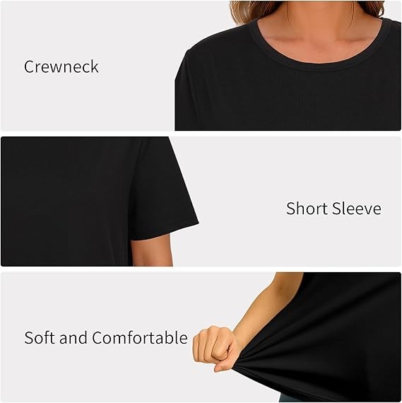 Women's Short Sleeve Crew Neck Stylish T-Shirt Solid color S-XXXL Black
