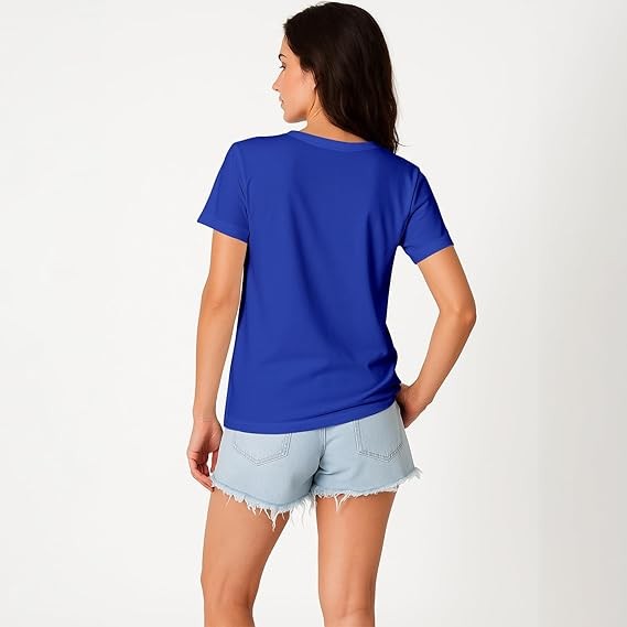 Women's Short Sleeve Crew Neck Stylish T-Shirt Solid color S-XXXL Blue 6.34 oz