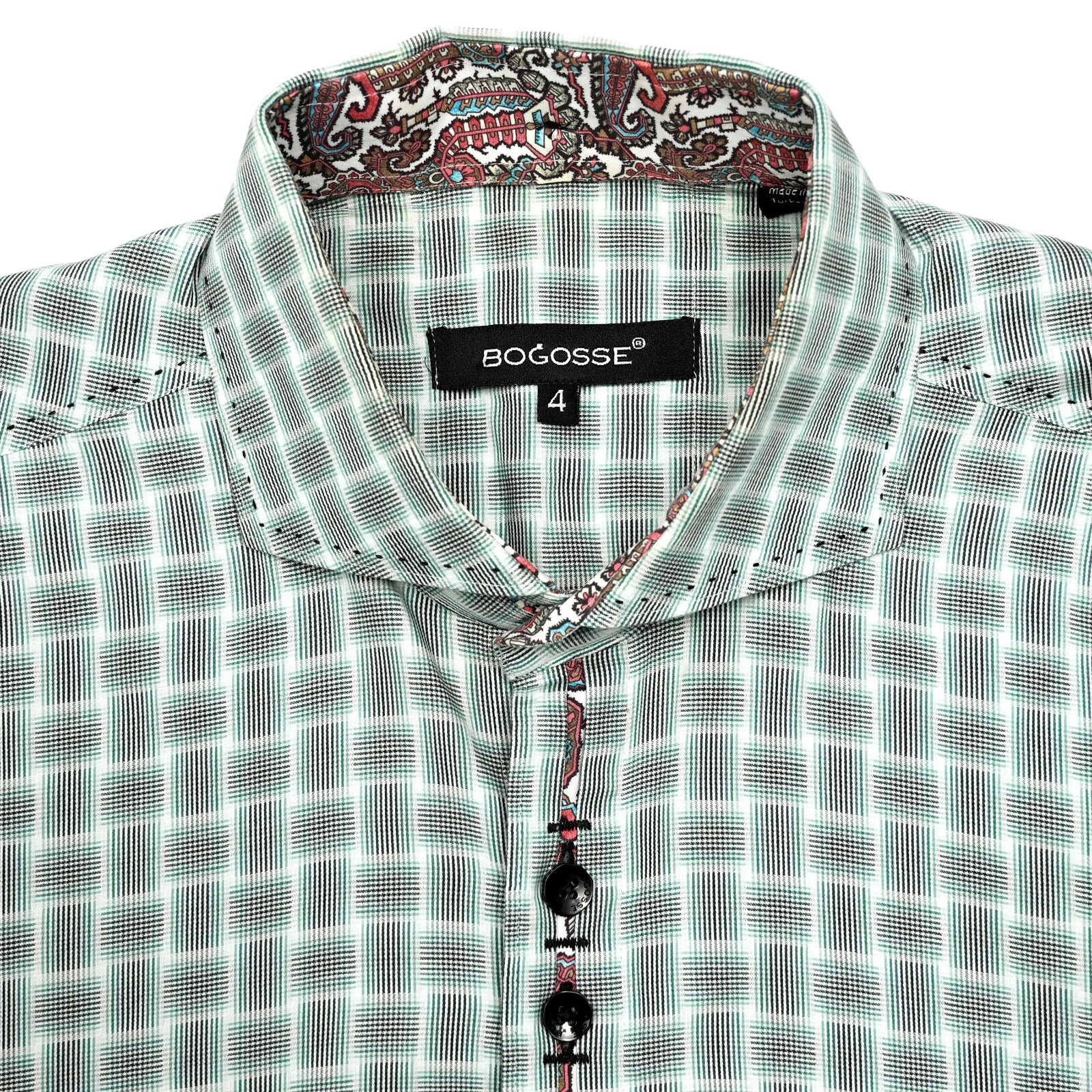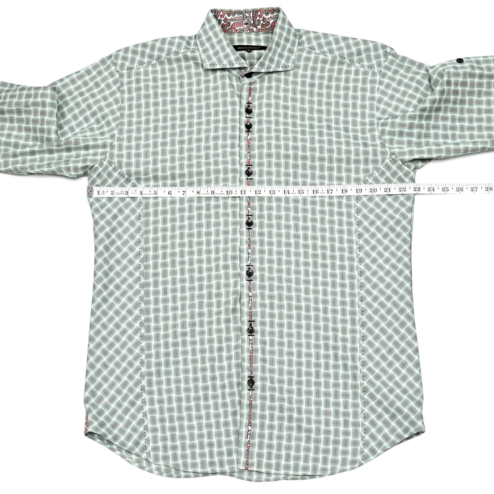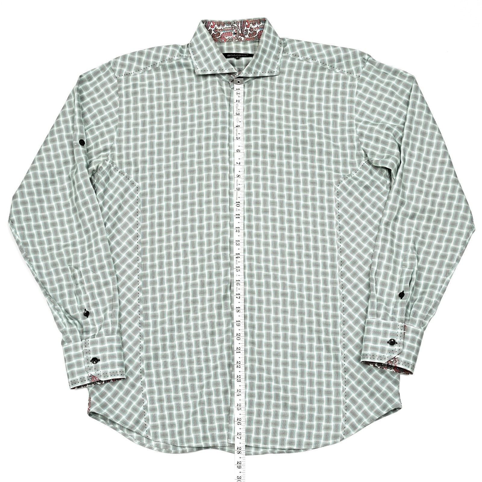 Bogosse Men's Shirt Abstract Geometric Lines Button Up L/S Contrast Stitch Large