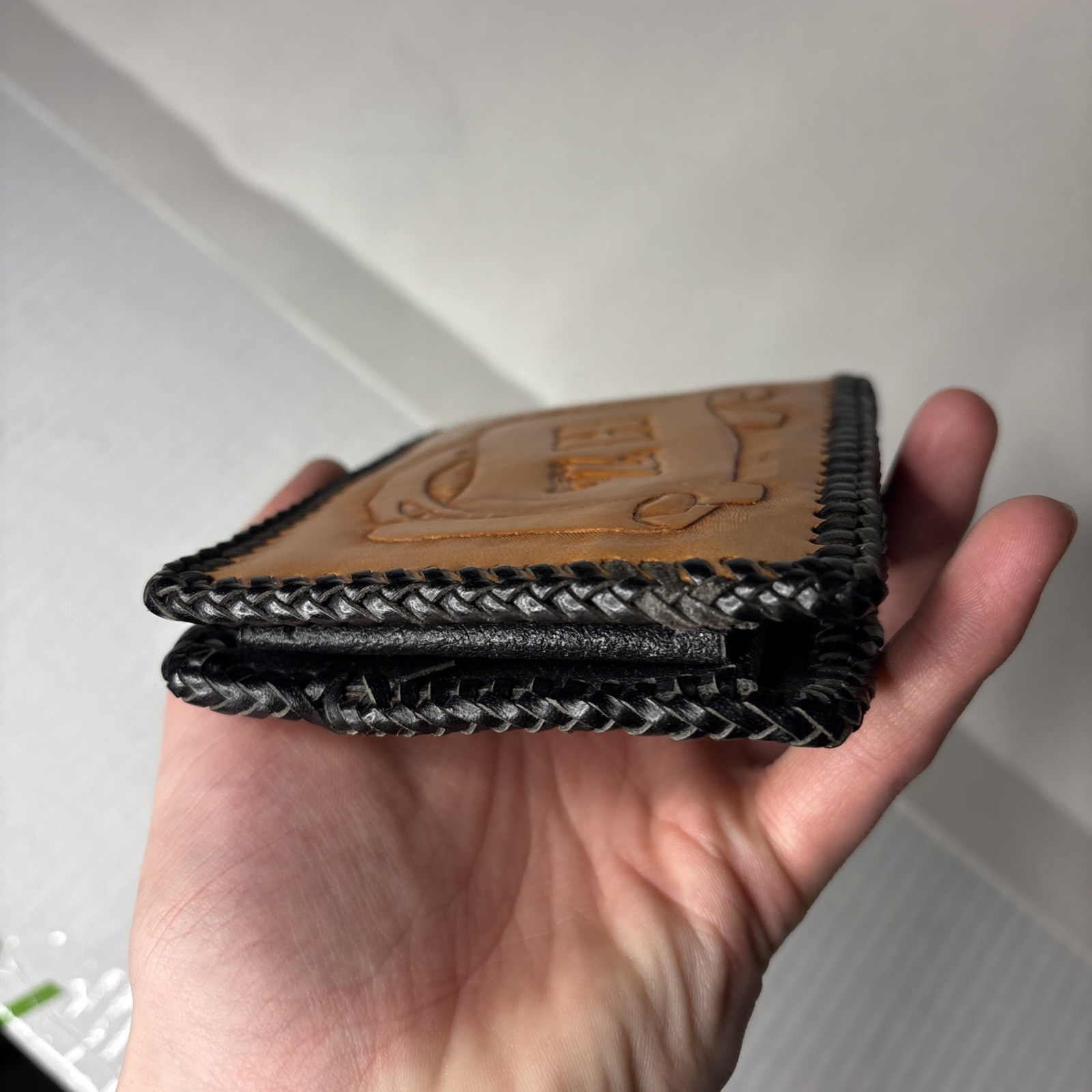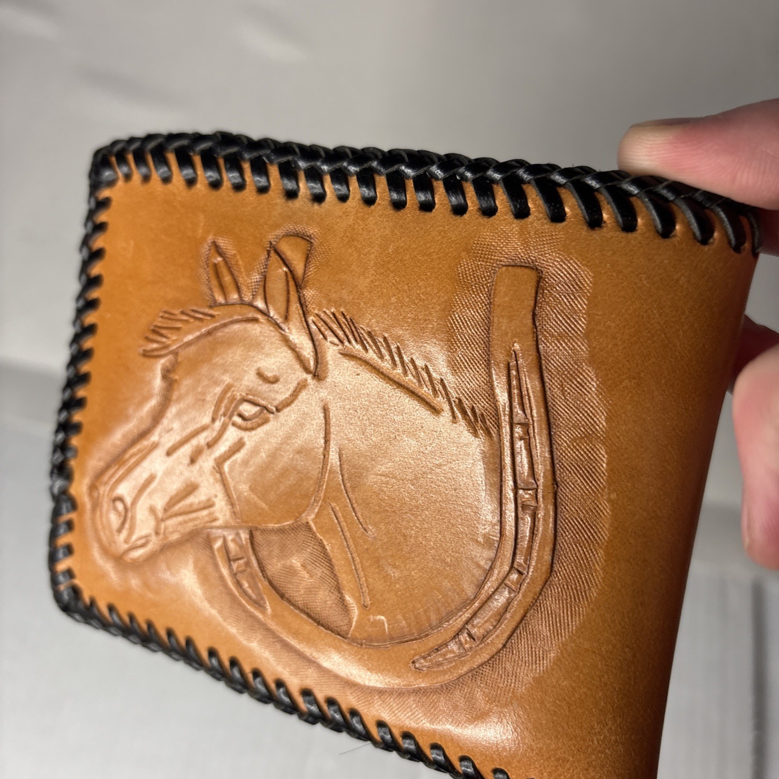 Genuine Leather Cowboy Horse Wallet HZ Embosses Thick Stitch Brown Black Western