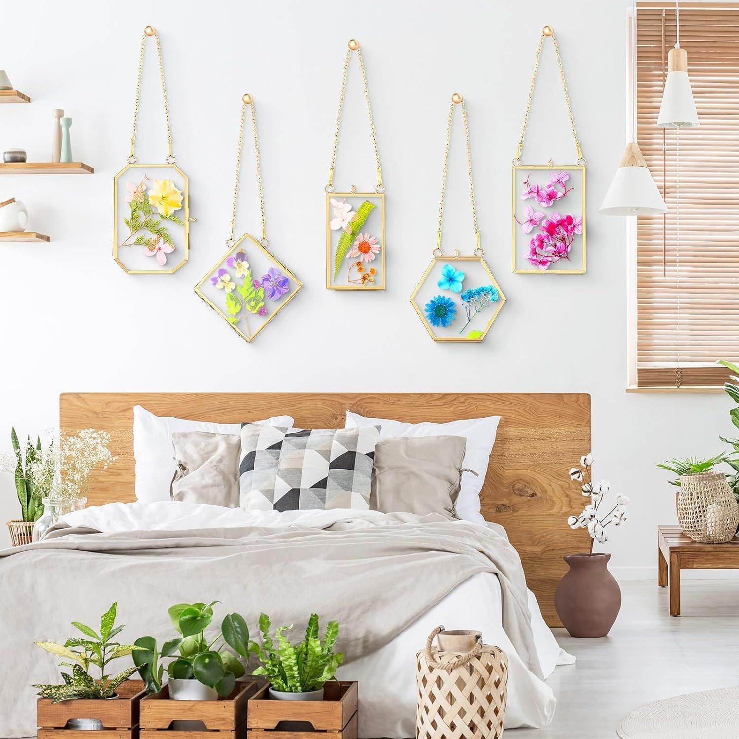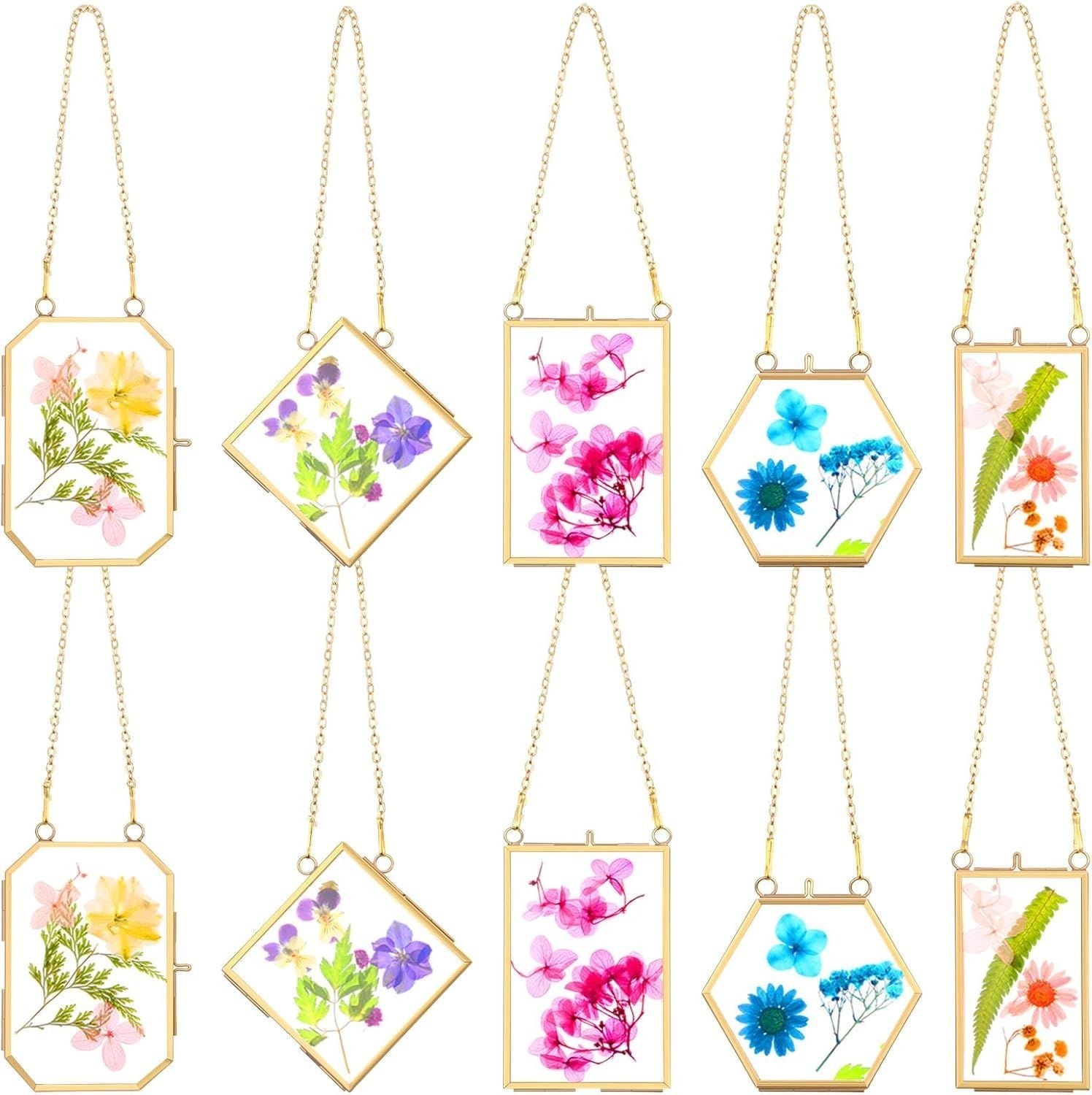 10 Pcs Glass Frame for Pressed Flowers 5 Different Shapes Brass Gold