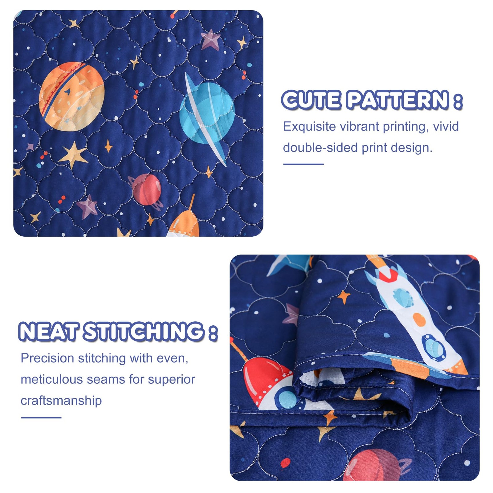 Space Rocket Universe Quilt Set Queen for Kids Boys Bedding Sets with Pillowc...