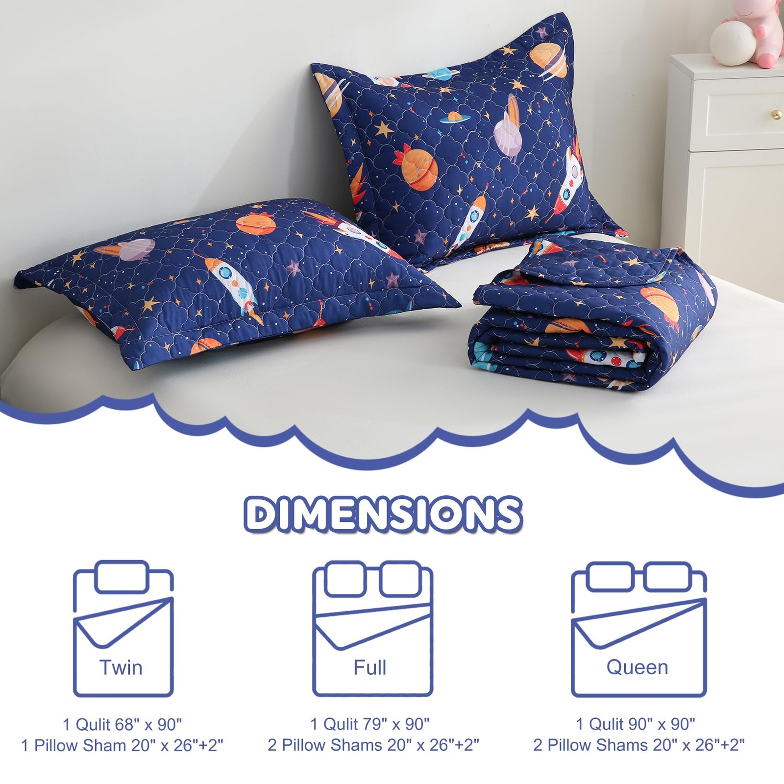 как выглядит Space Rocket Universe Quilt Set Queen for Kids Boys Bedding Sets with Pillowc... фото