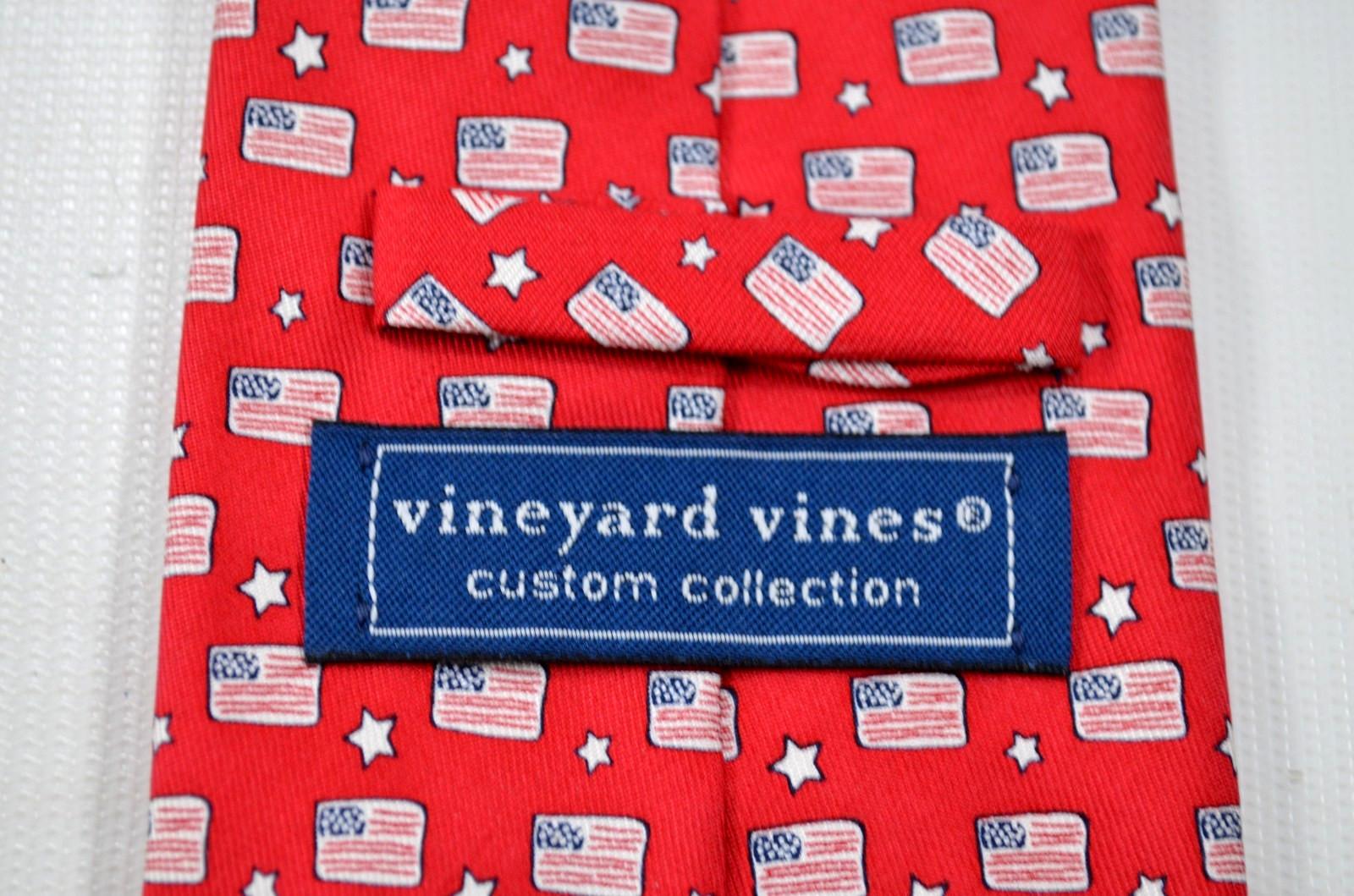 как выглядит Vineyard Vines Custom Collection "American Funds "Tie Red w/ American Flags 60" фото