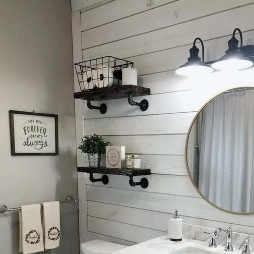 Industrial Pipe Shelf Brackets for 8 10 12 14 inches Board, Iron L Pipe Float...