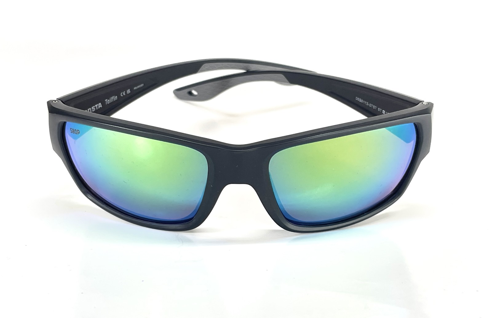 Costa Del Mar Tailfin Small Black matte frame 580P Green Mirror Plastic lens