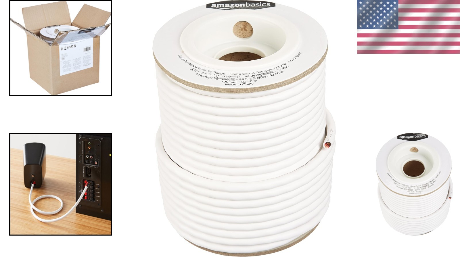 Brand New 14-Gauge Audio Speaker Wire Cable 100ft White