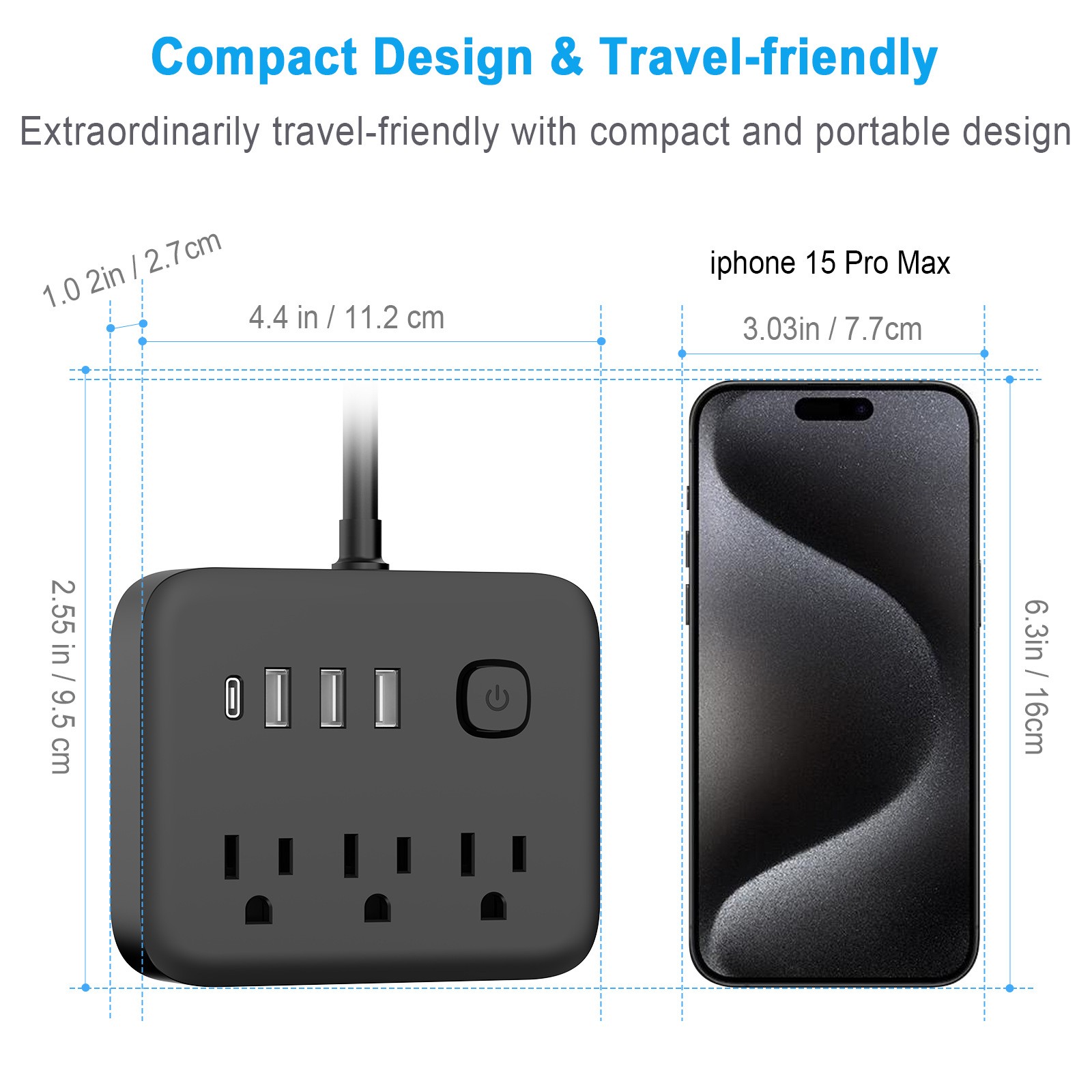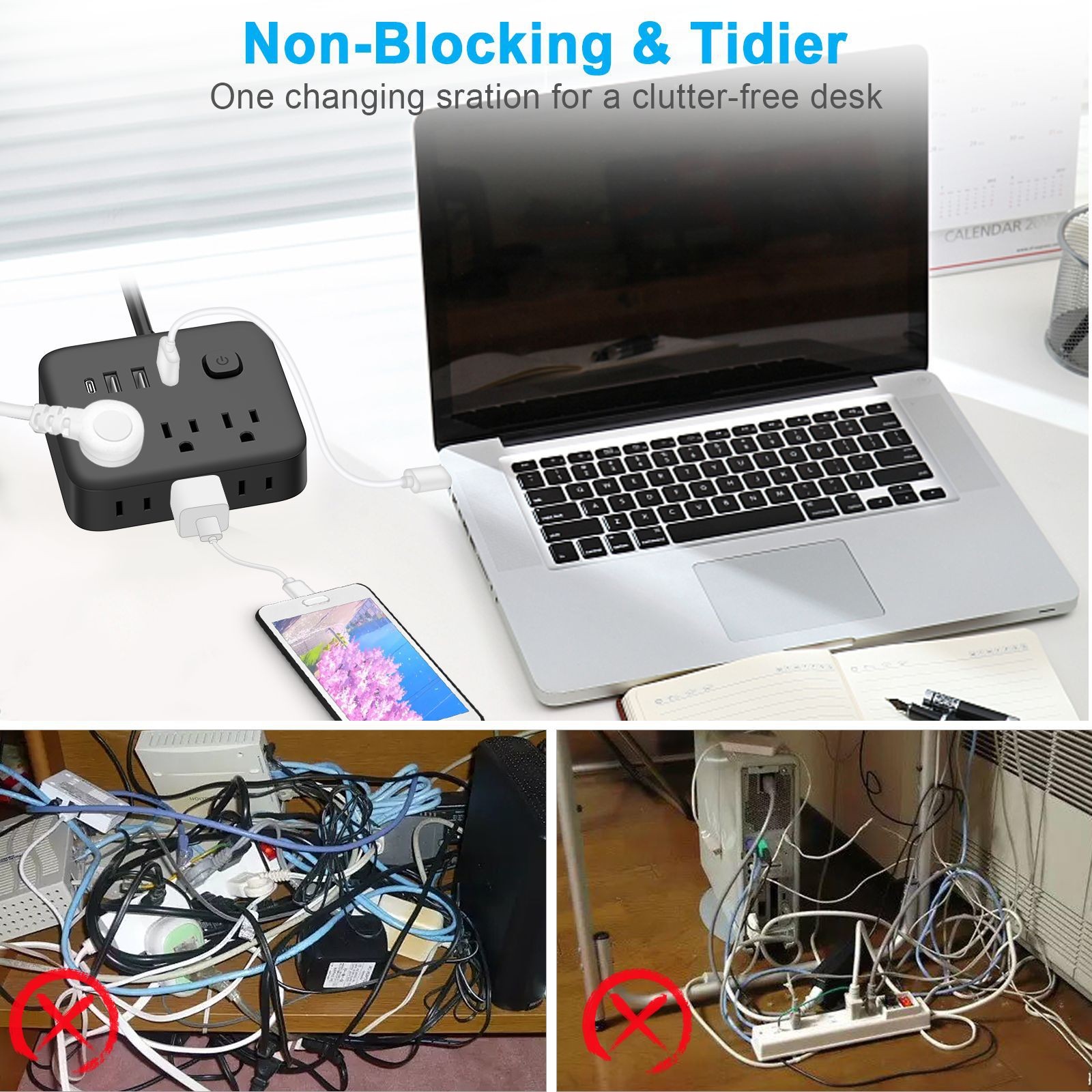 10 in 1 Power Strip Surge Protector 6 AC Outlet 3 USB Ports Type C Port 5ft Cord