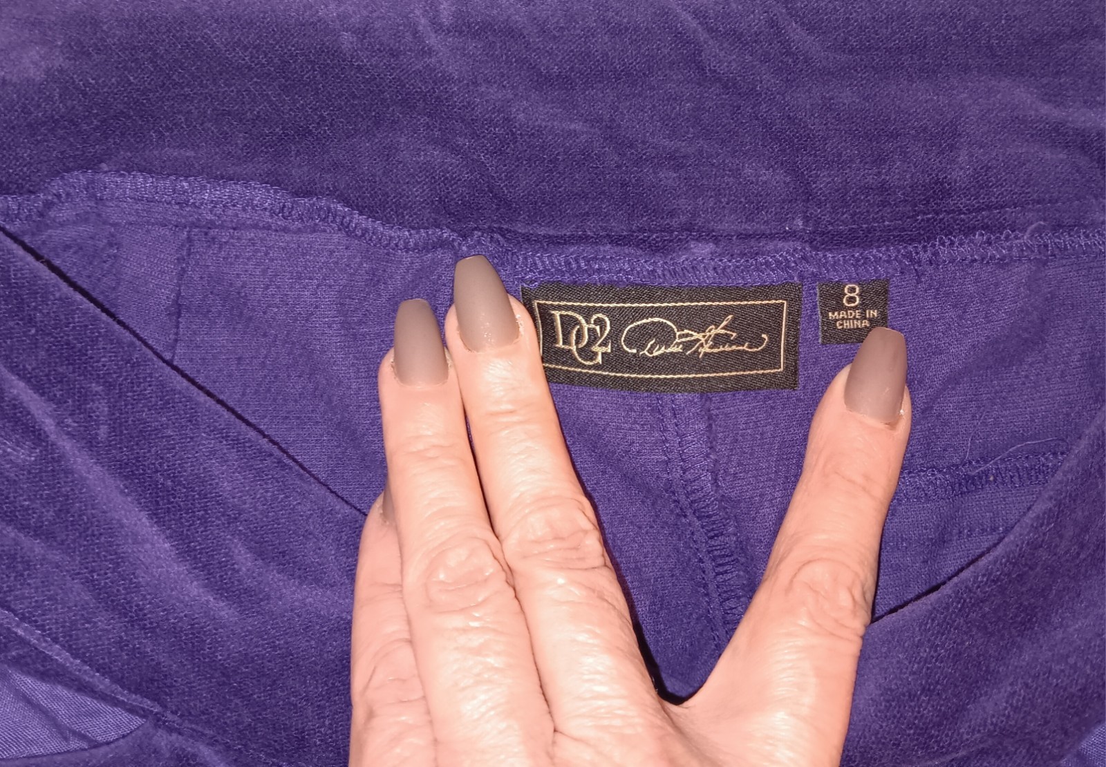 как выглядит DG2 by Diane Gilman Straight Leg Velvet Pants Sz 8 Purple Stretch Women H844 фото