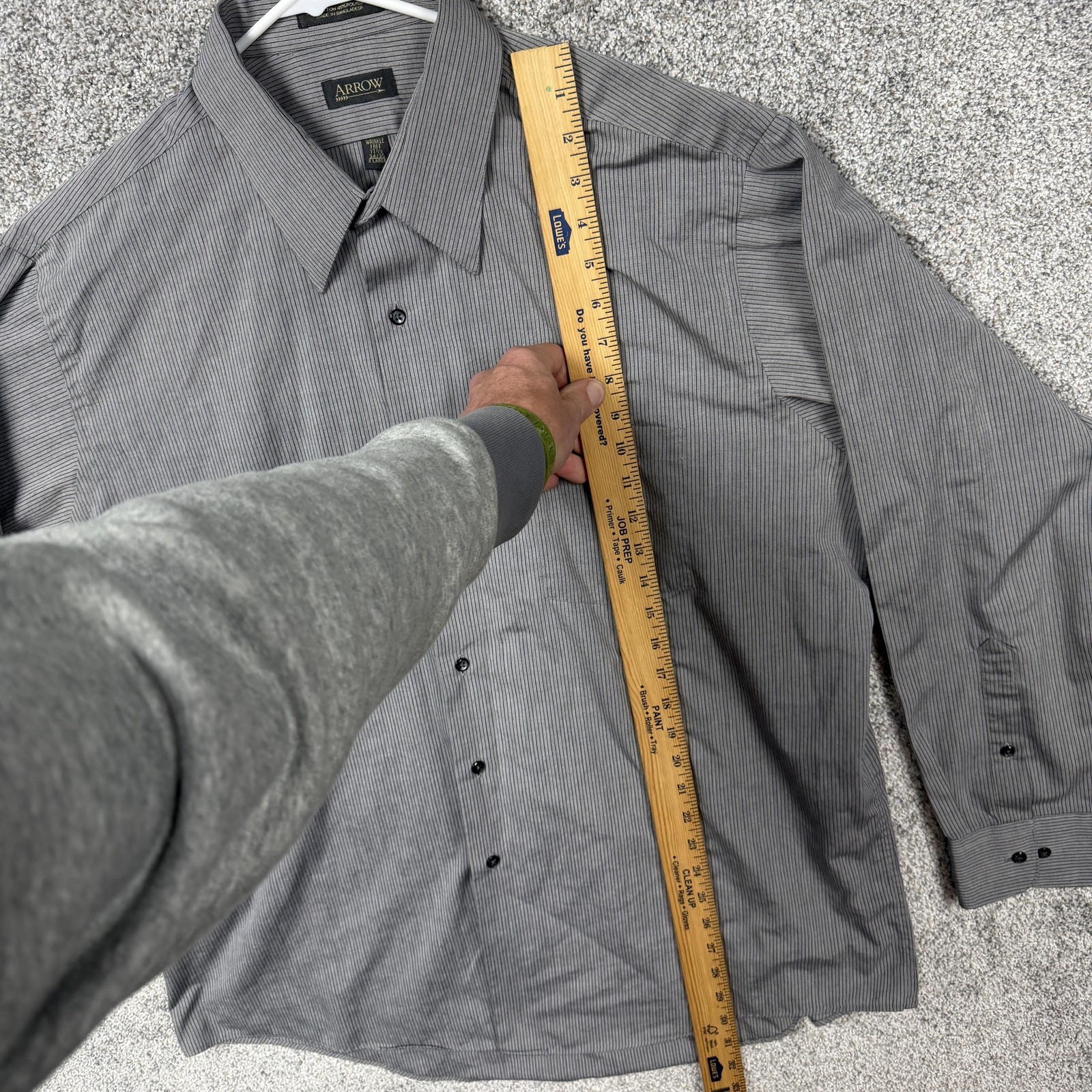 как выглядит Arrow Shirt Mens XL 17.5 34/35 Gray Pinstripe Wrinkle Free Dress Business Office фото