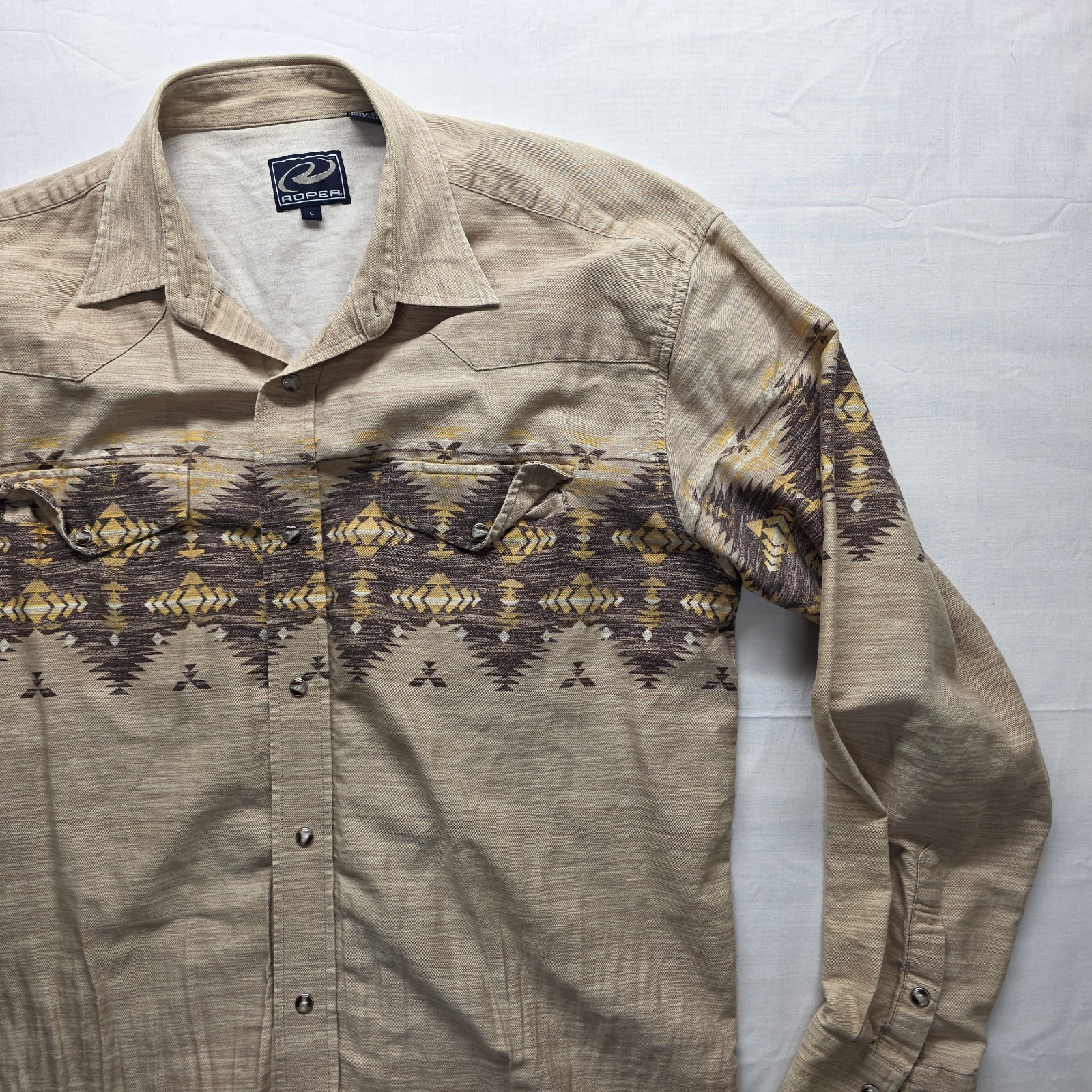 как выглядит Vtg 90s Roper Pearl Snap Western Shirt Mens M Aztec Southwest Geometric Rodeo фото