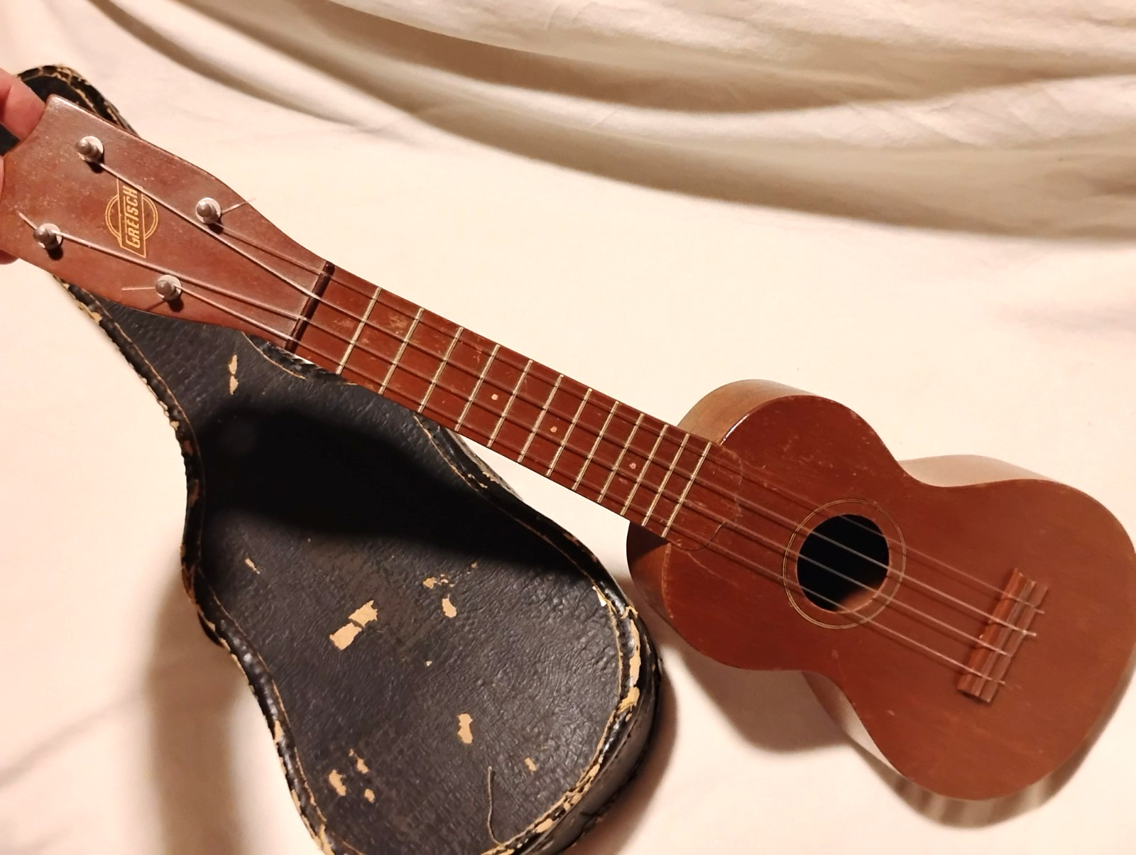 как выглядит ANTIQUE 30s GORGEOUS MAHOGANY GRETSCH SOPRANO UKULELE w CASE AMAZING BRIGHT TONE фото