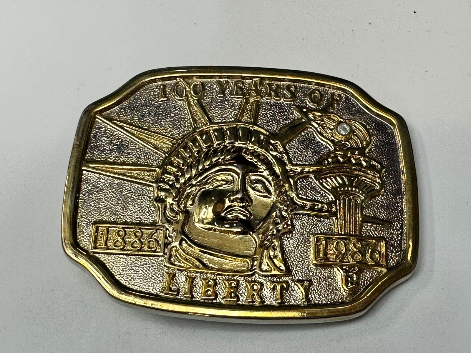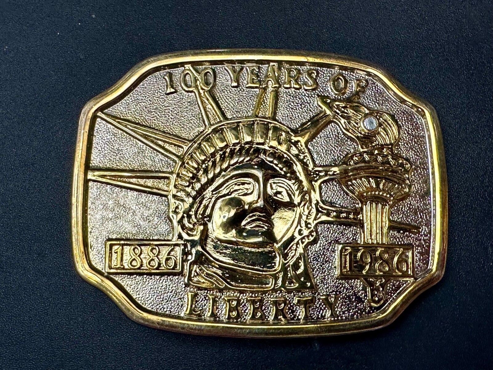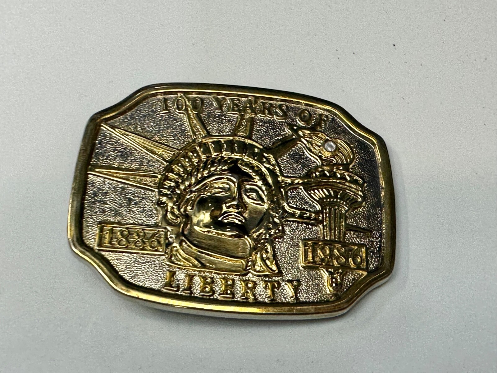 Statue Of Lady Liberty Belt Buckle 100 Year Anniversary - Starburst In Flame