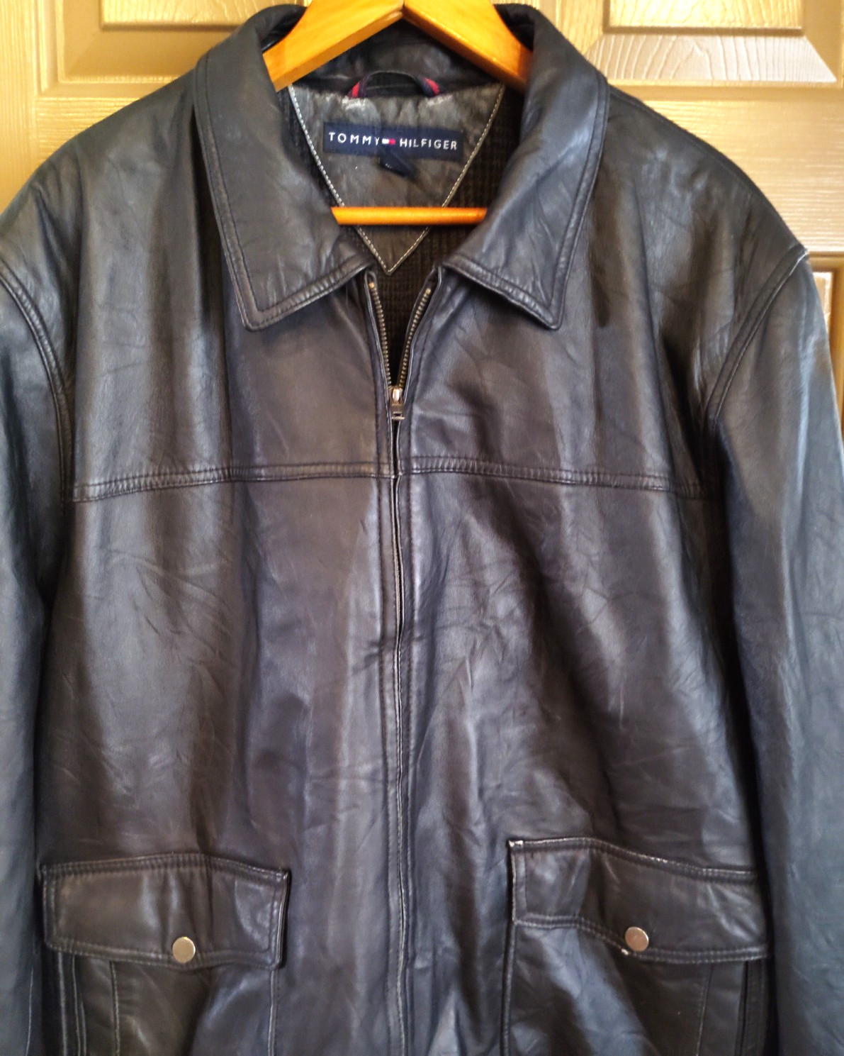 как выглядит Vintage Tommy Hilfiger Leather Jacket Sz XL Black Men