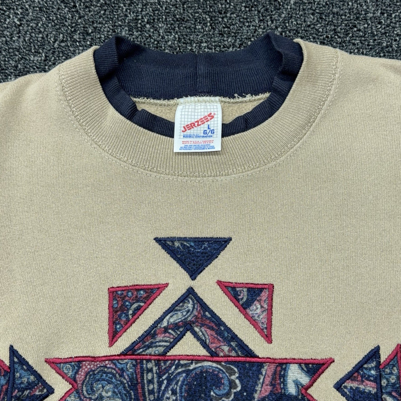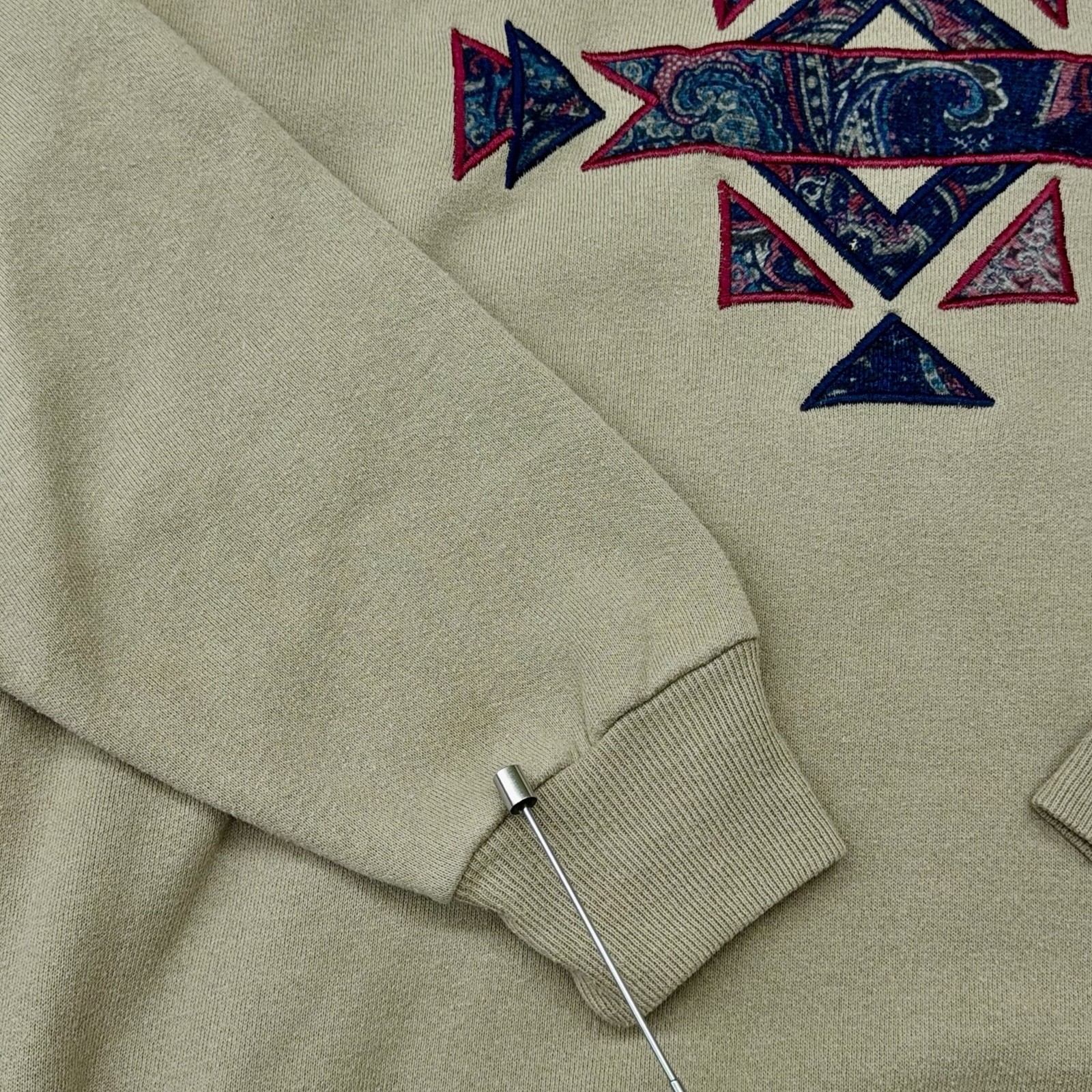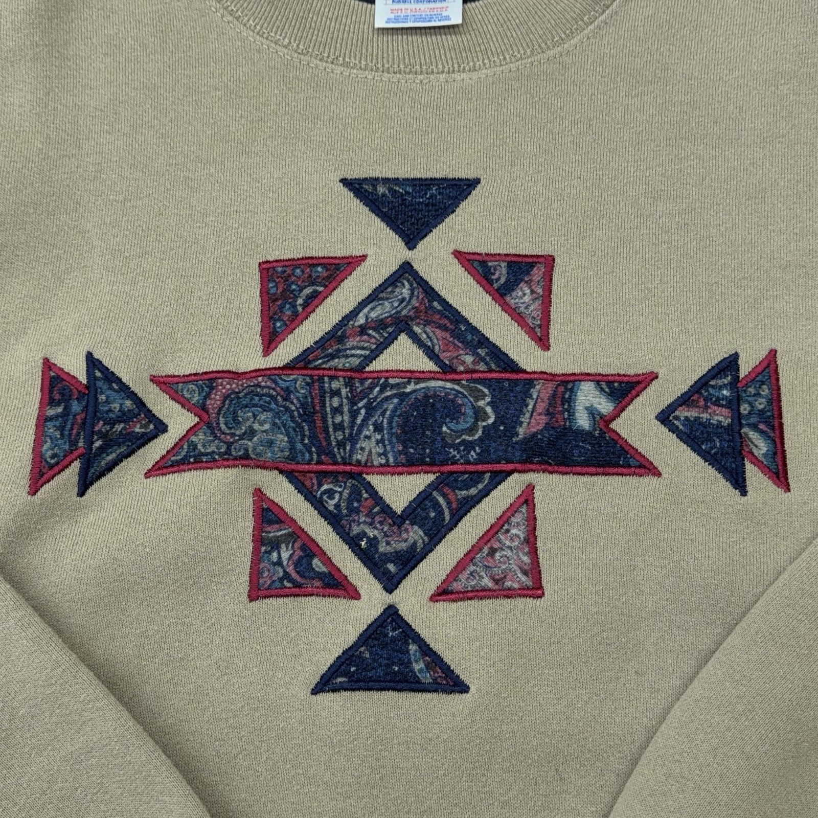 Vtg 90s Jerzees Southwestern Aztec Paisley Applique Crewneck Sweatshirt L Tan
