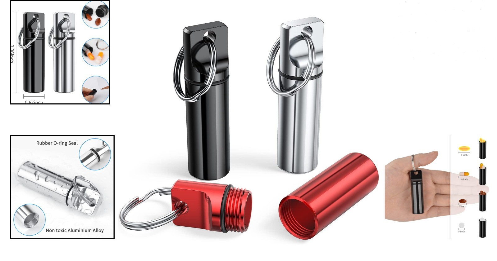 Mini Aluminium Pill Organizer 3 Pack - Waterproof Travel Pill Keychain