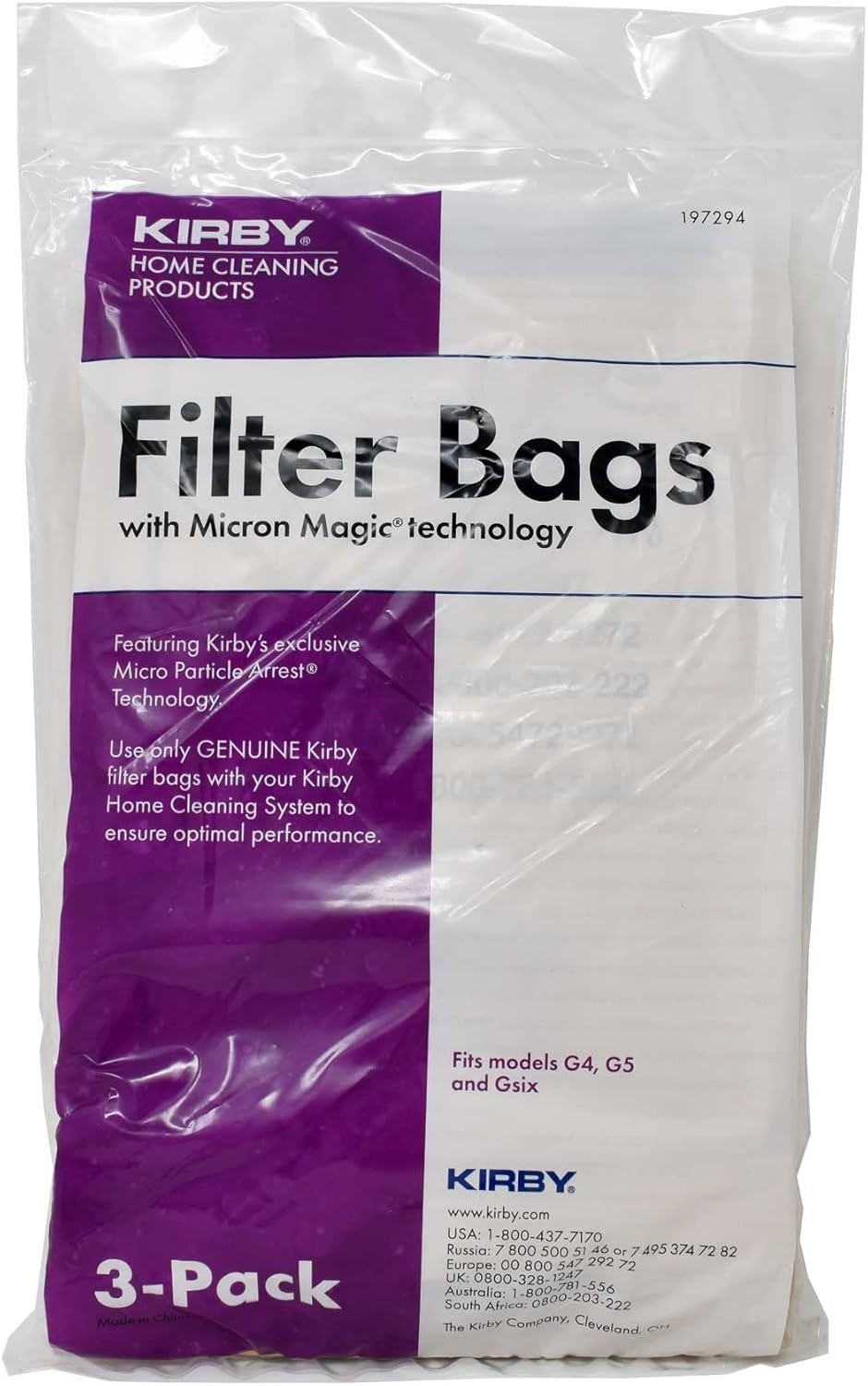 Kirby Vacuum Bags 3-Pack - Genuine Micron Magic Filtration for G3, G4, G5, G6