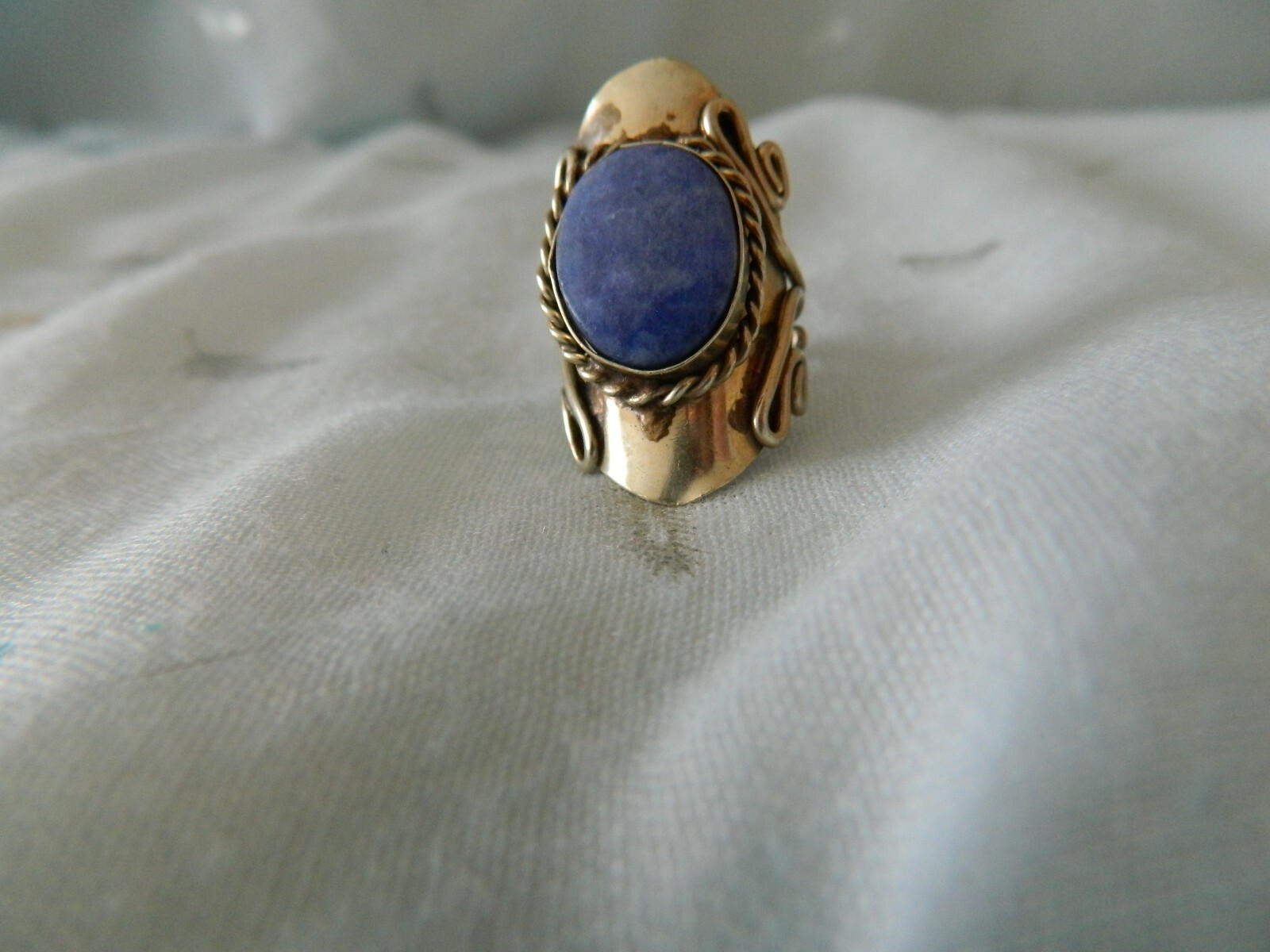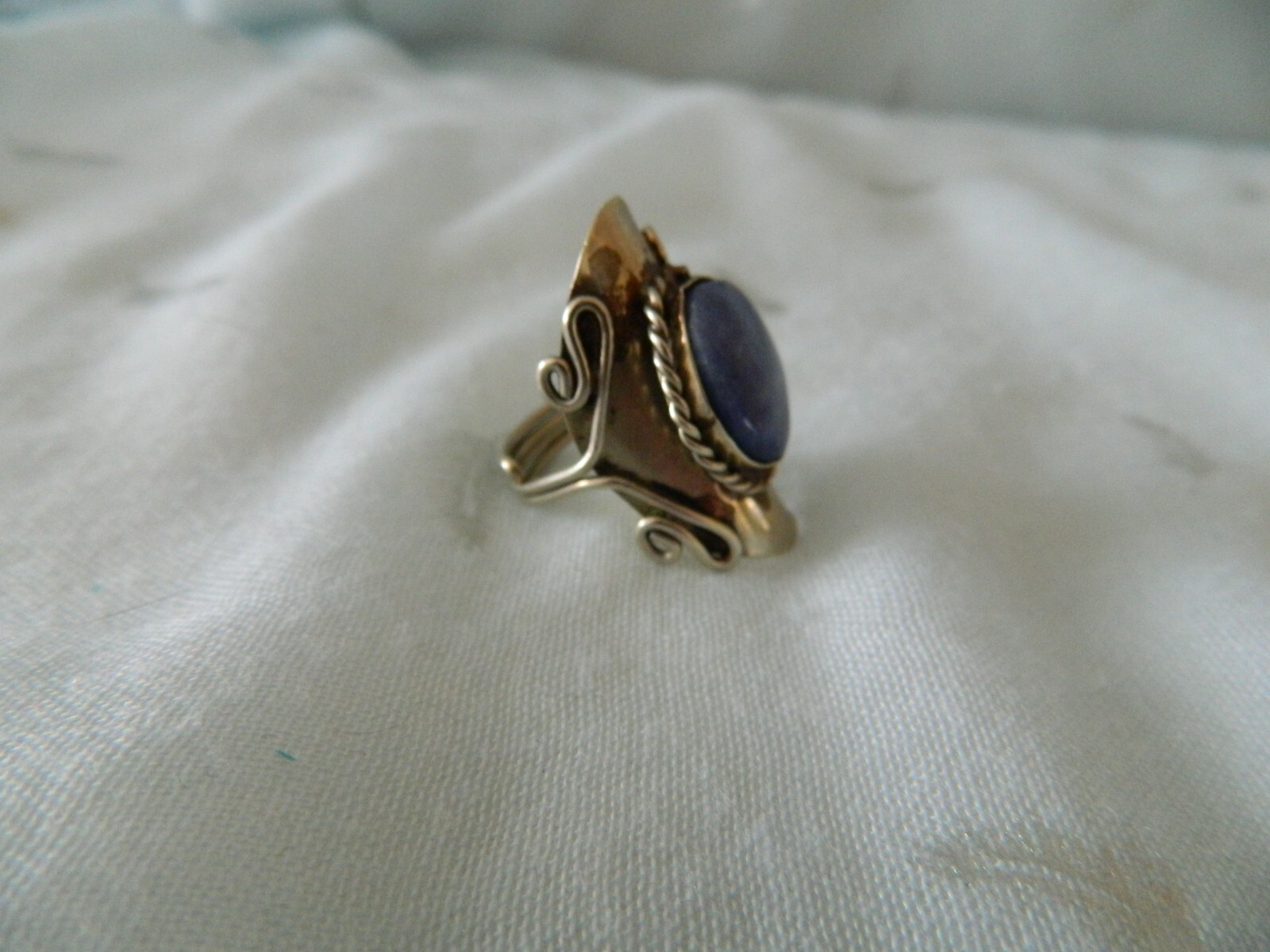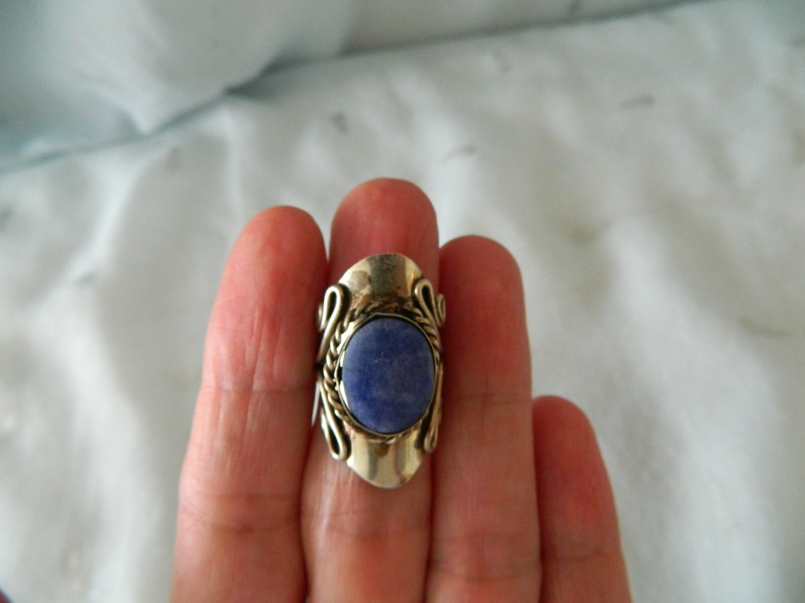 как выглядит Unisex Expandable Ring Silver Colour With Blue Gem Stone Oval Shape фото