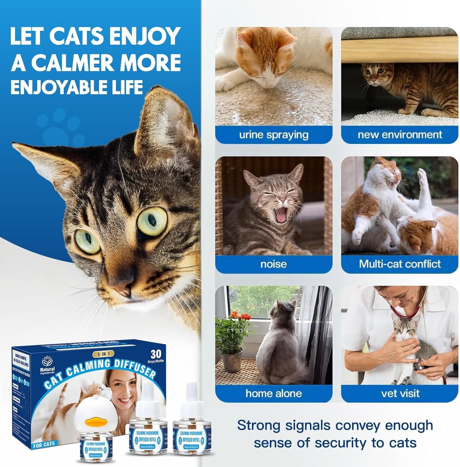 Cat Calming Pheromones Diffuser: 3-in-1 Kit Cat Appeasing Pheromone Diffuser to