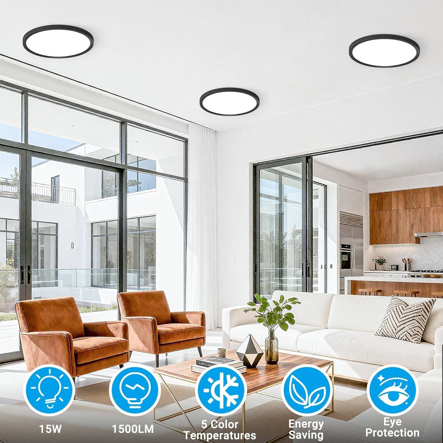 LED Flush Mount Ceiling Light,7Inch 15W,3000K/3500K/4000K/5000K/6500K 5 Color...