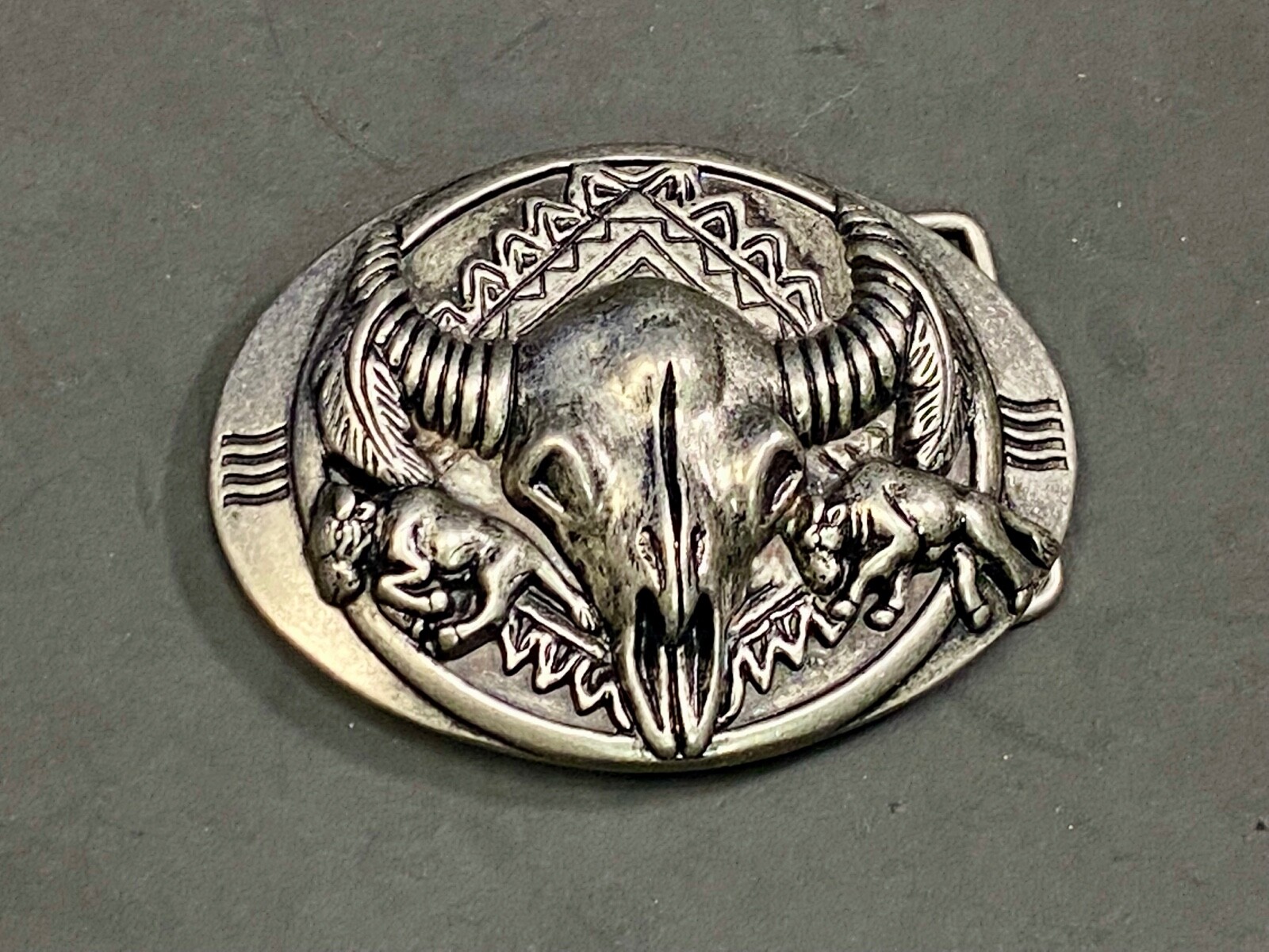 • Raised Texas Longhorn Skull On Southwestern Vibe Belt Buckle