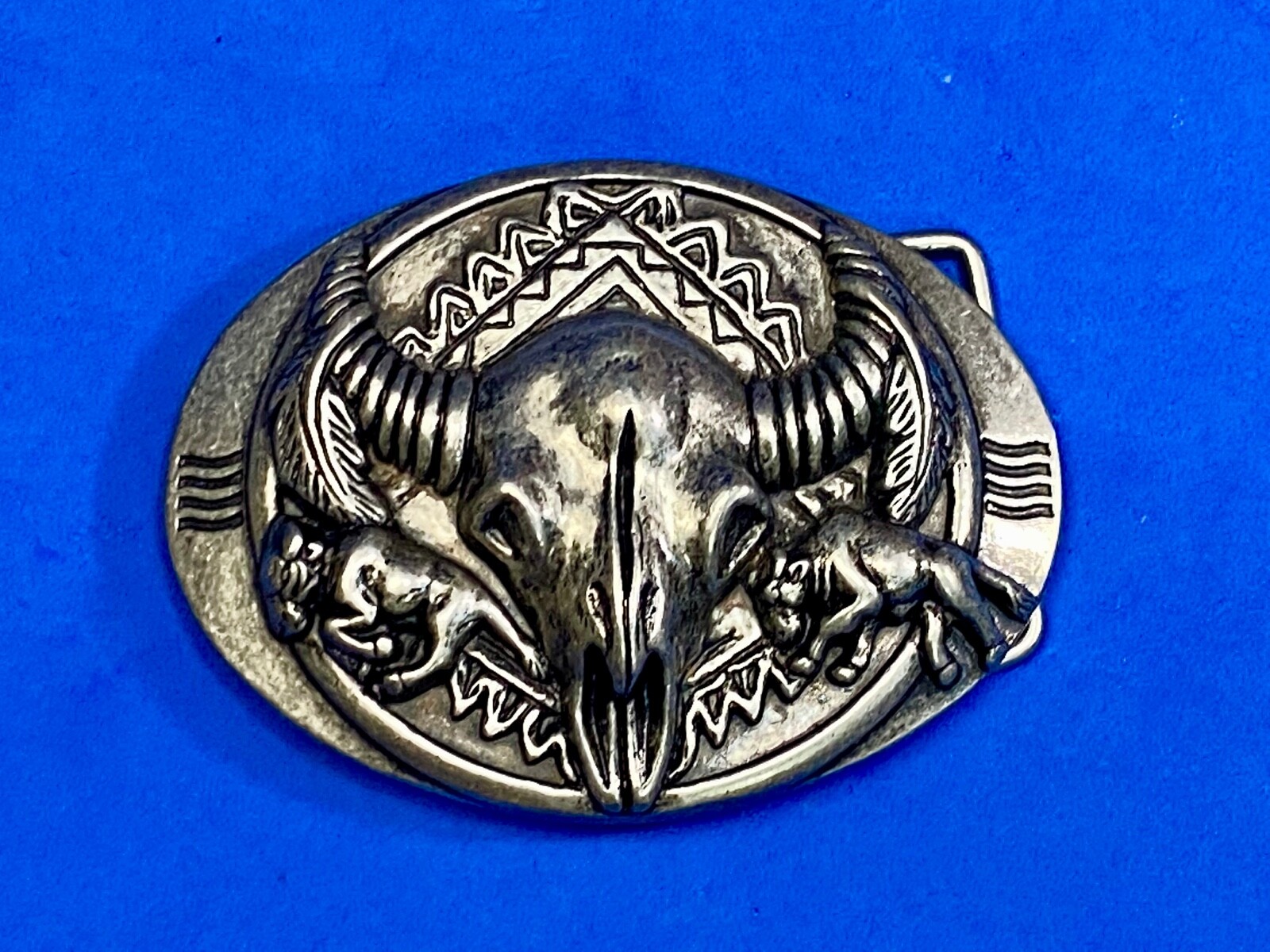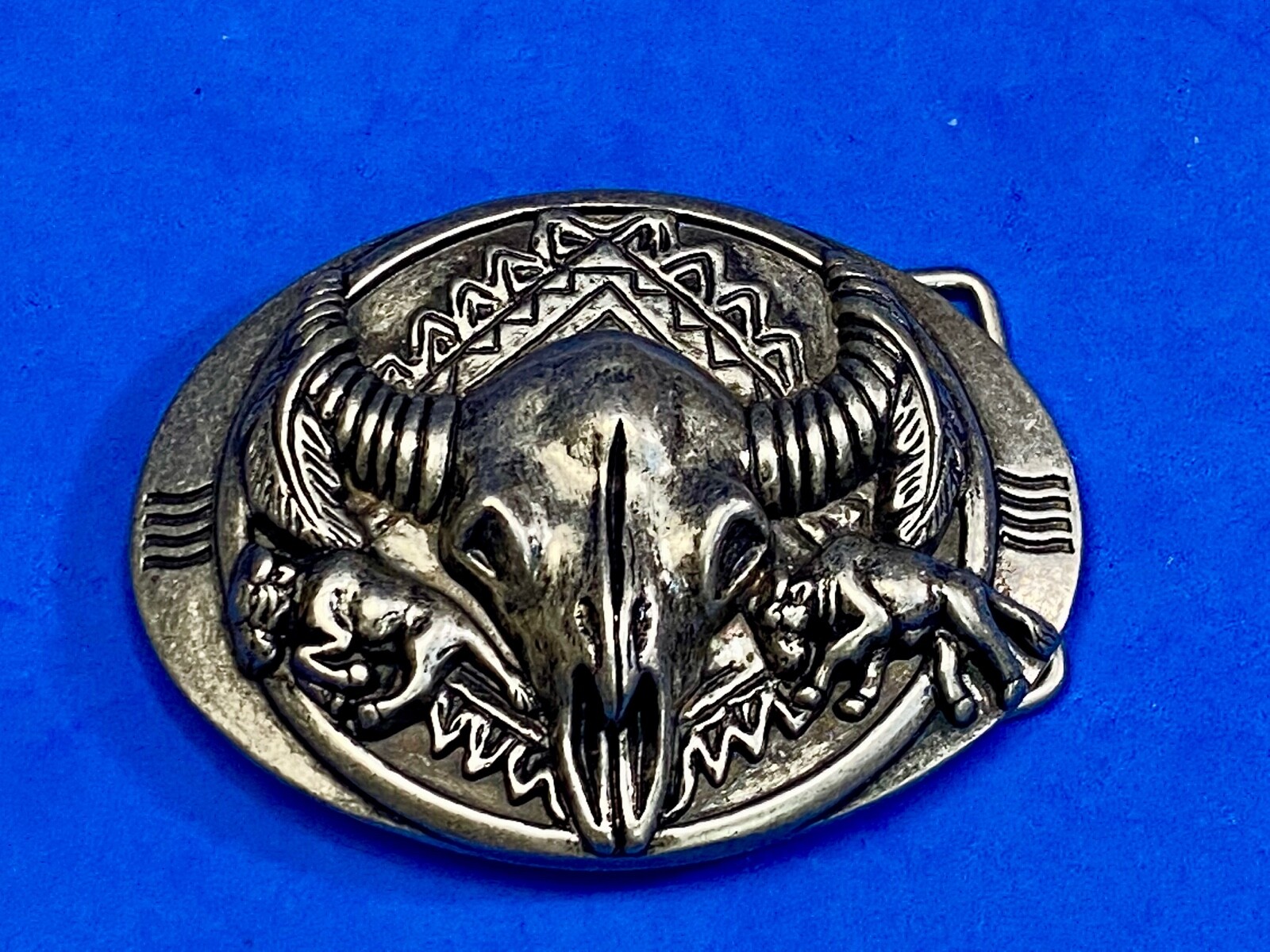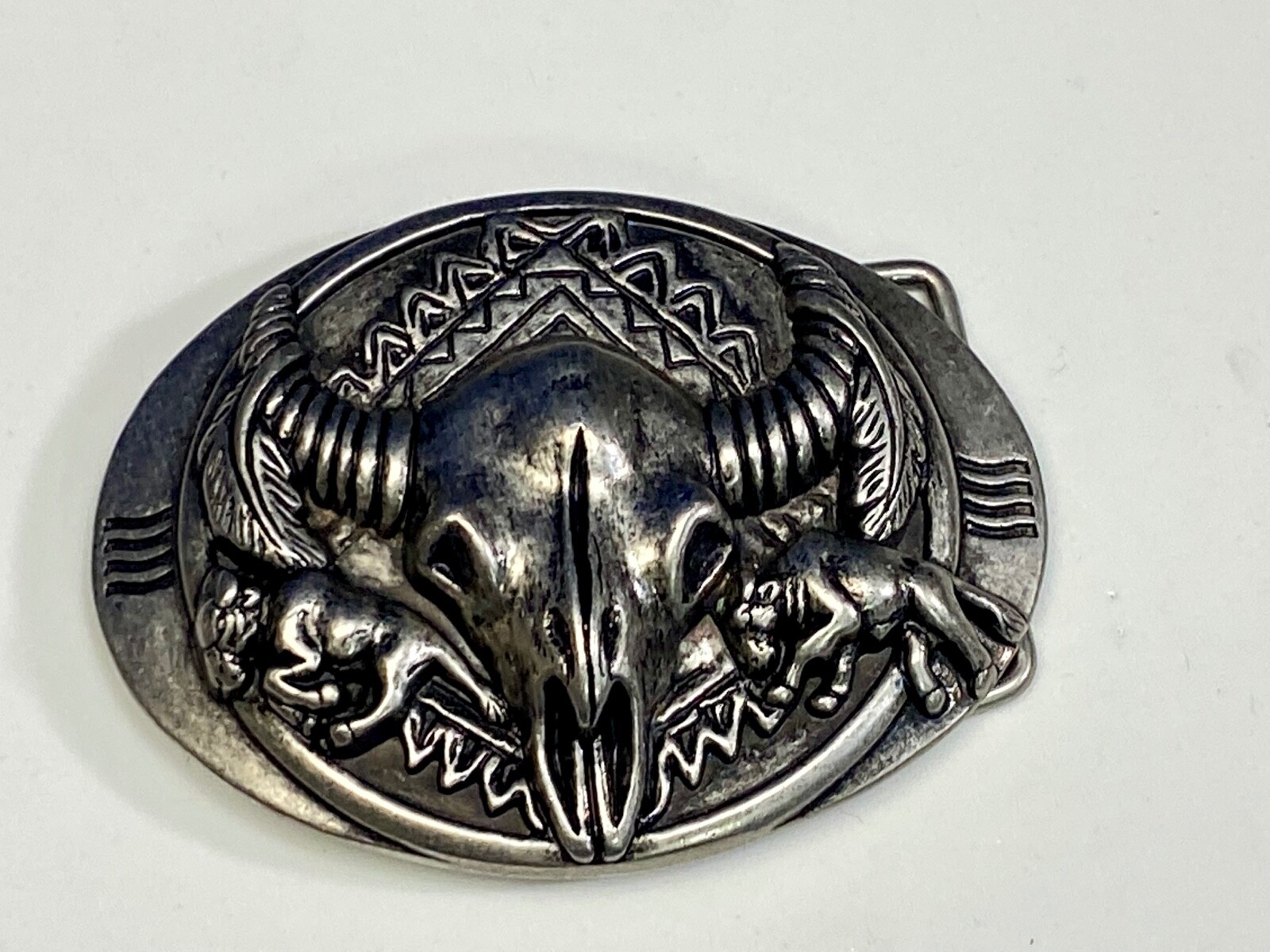 как выглядит Raised Texas Longhorn Skull On Southwestern Vibe Belt Buckle фото