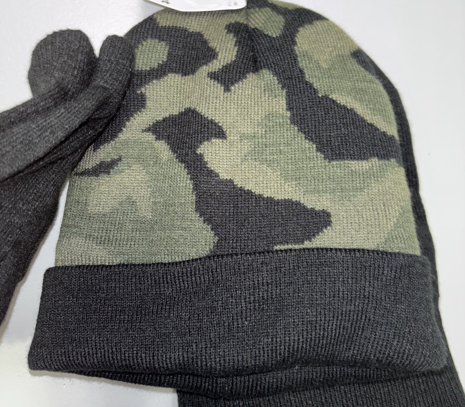 как выглядит Camouflage Kids 3 Piece 2 Hats And One Pair Of Gloves. фото