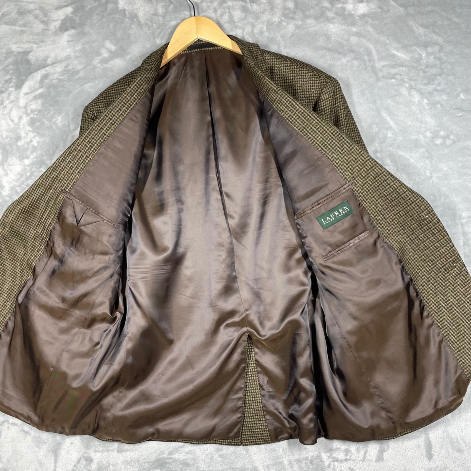 как выглядит Ralph Lauren Mens Tweed Sport Coat Blazer Jacket Brown Tan Wool Hounds Tooth 46R фото