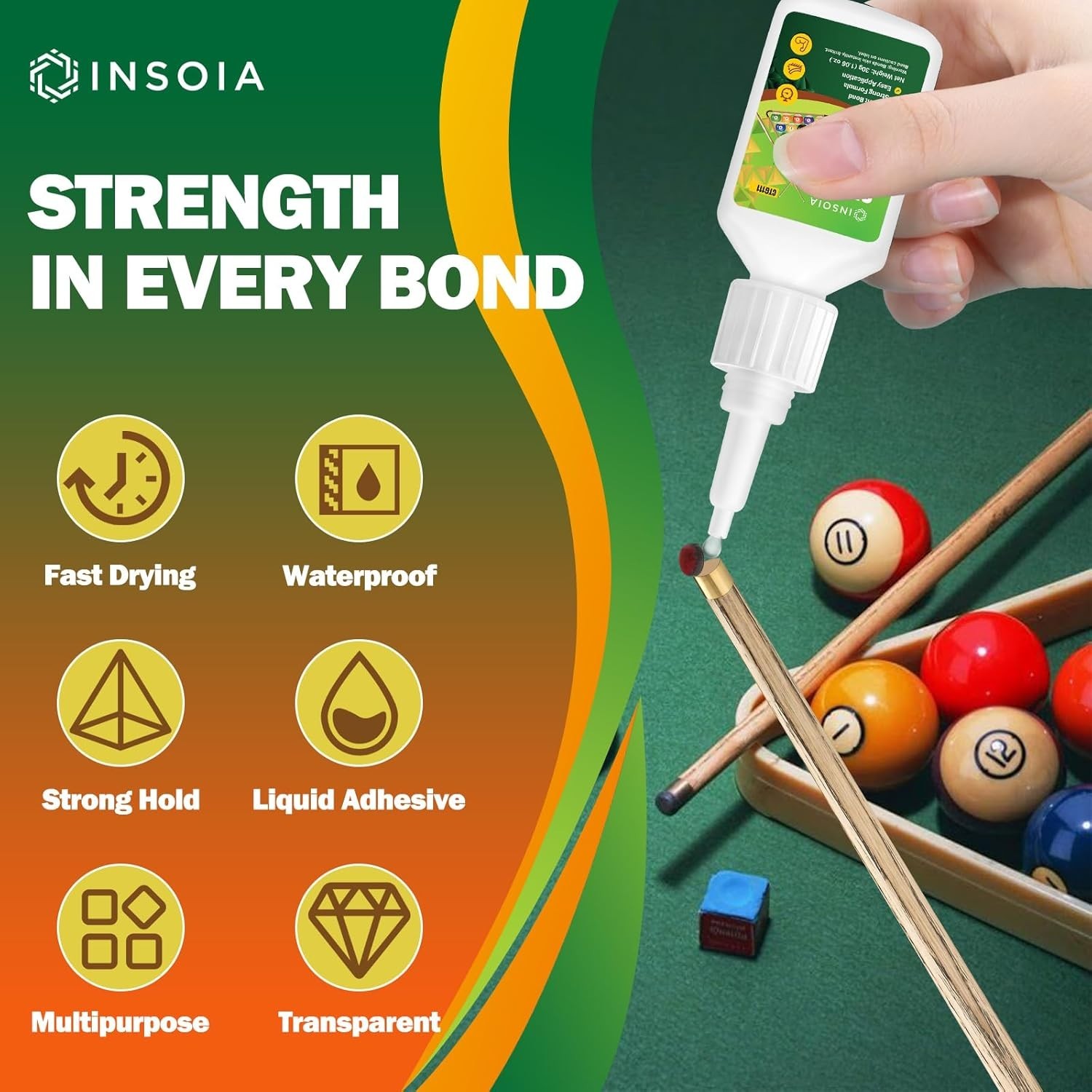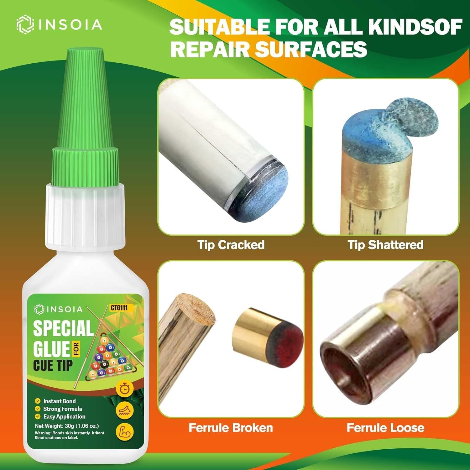 30g Super Strong Clear Pool Cue Tip Glue - Quick-Dry Adhesive for Repairs