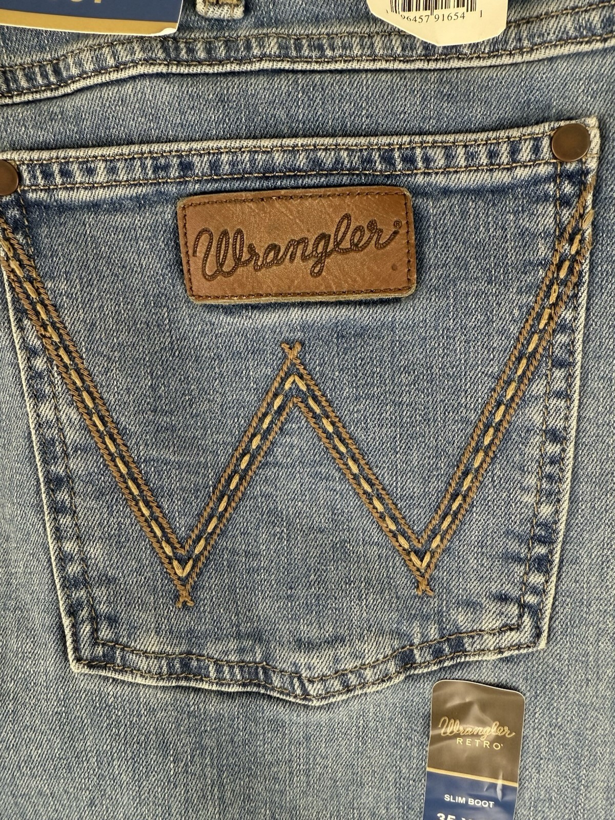 как выглядит Wrangler Retro Slim Boot Denim Jeans Men s 35x36 Cowboy Rodeo Western NWT фото