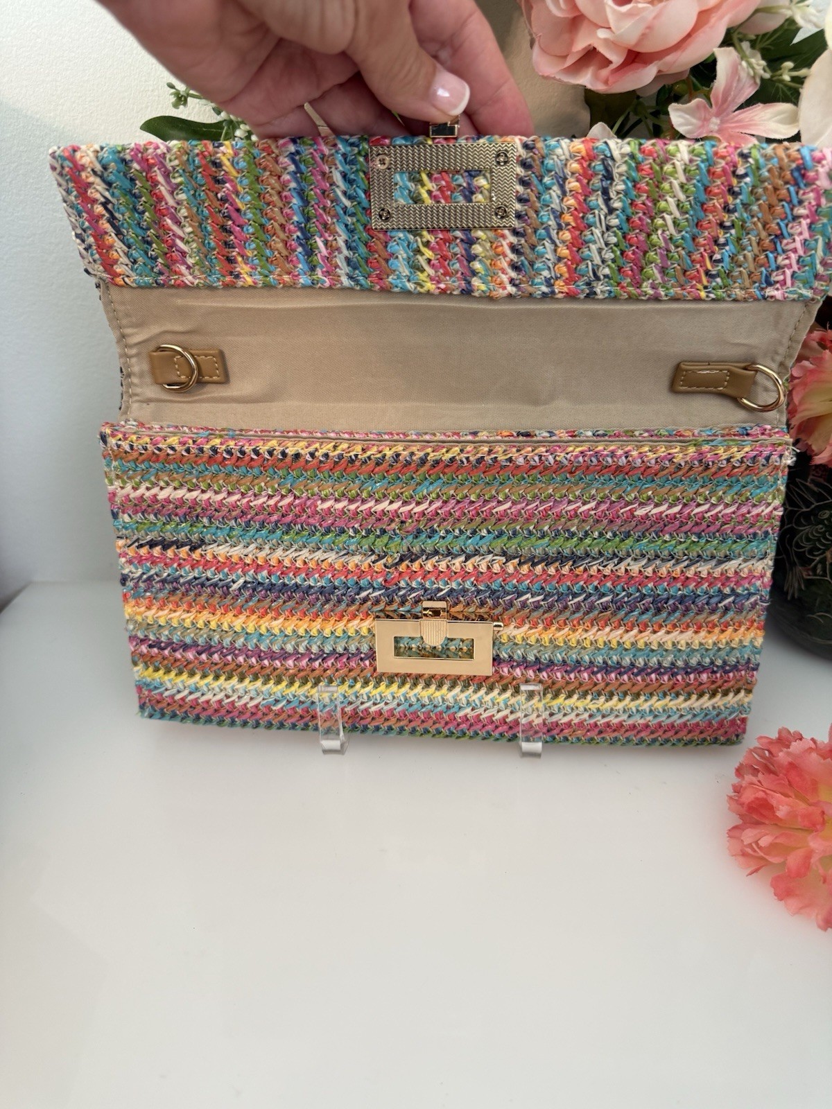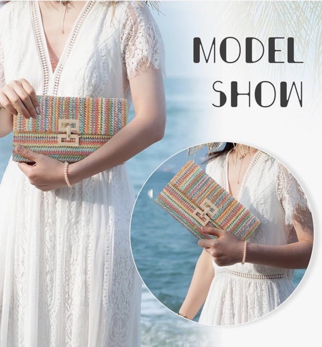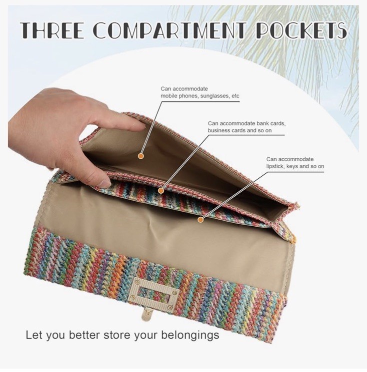 как выглядит Summer Straw Clutch Purse Woven Beach Bag Evening Purse Multicolor Gold Tone EUC фото