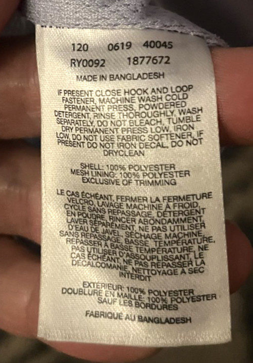 Lining Material: 100% Polyester