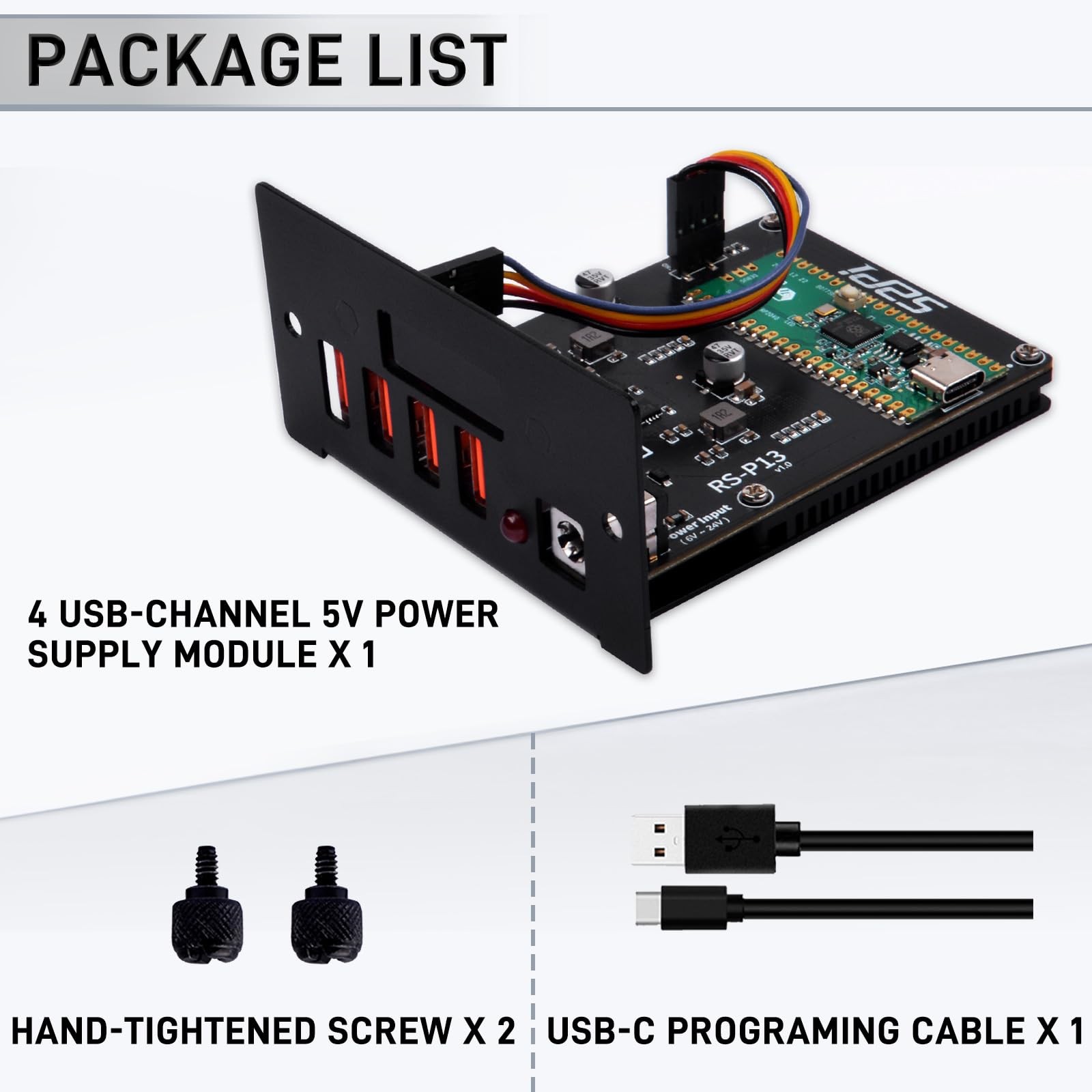 4 USB Channel 5V Power Supply Module for 19 Inch 1U Rackmount Application