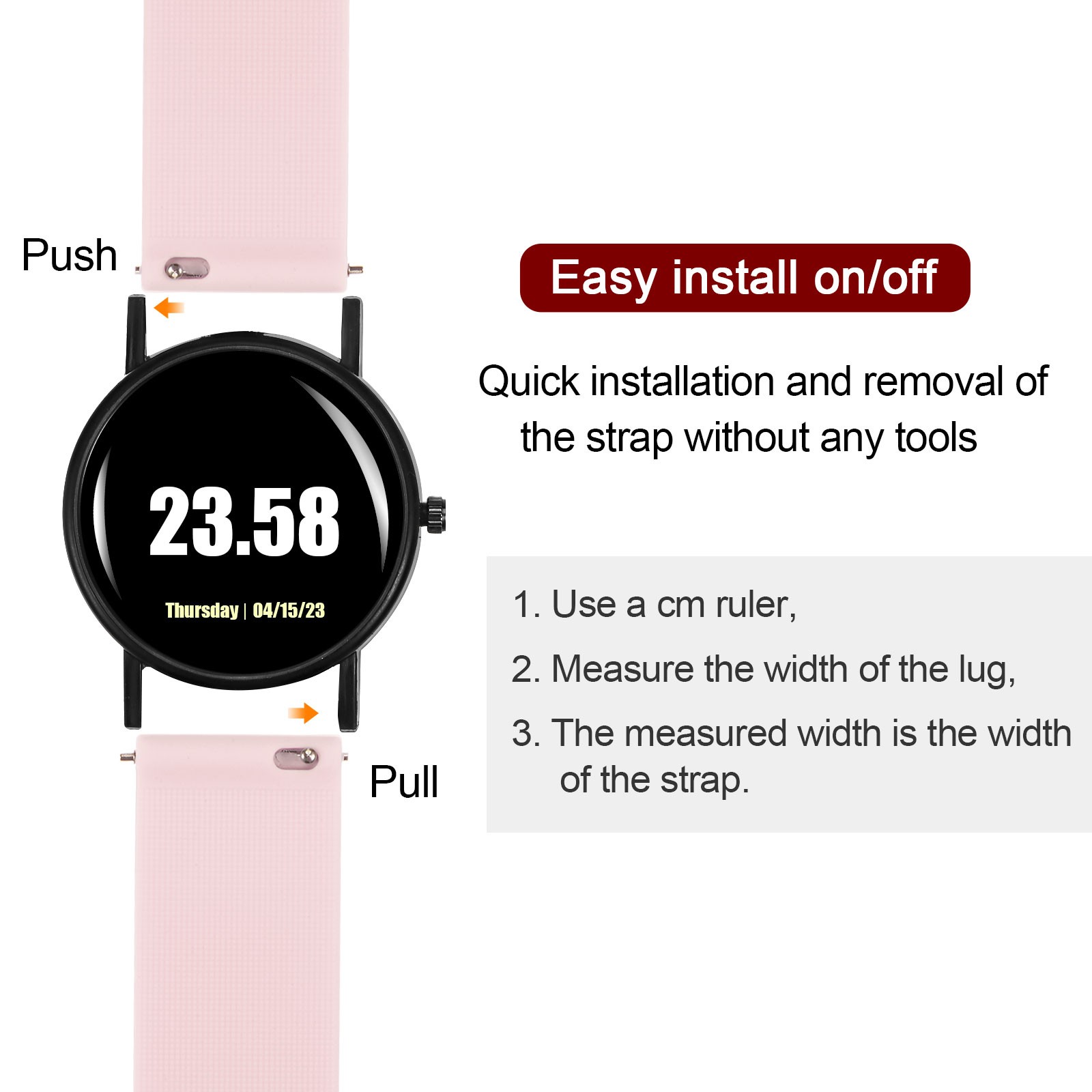 как выглядит Silicone Watch Band 12mm Quick Release Soft Rubber Watch Strap Pink фото