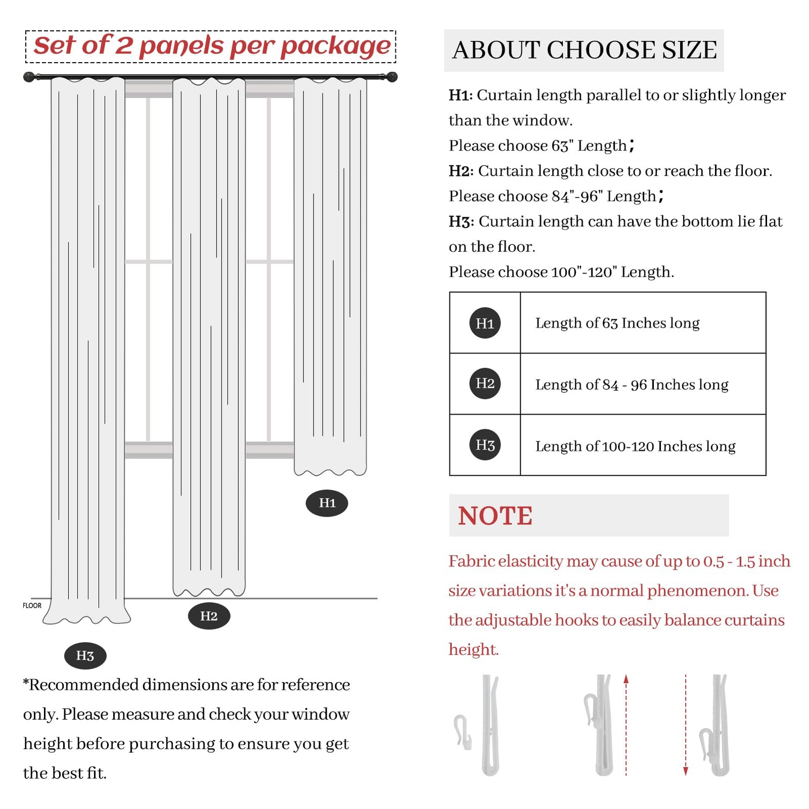 Cream Beige Pleated 92 Inch Boho Curtains for 40W x 92L Pack of 2 , Birch