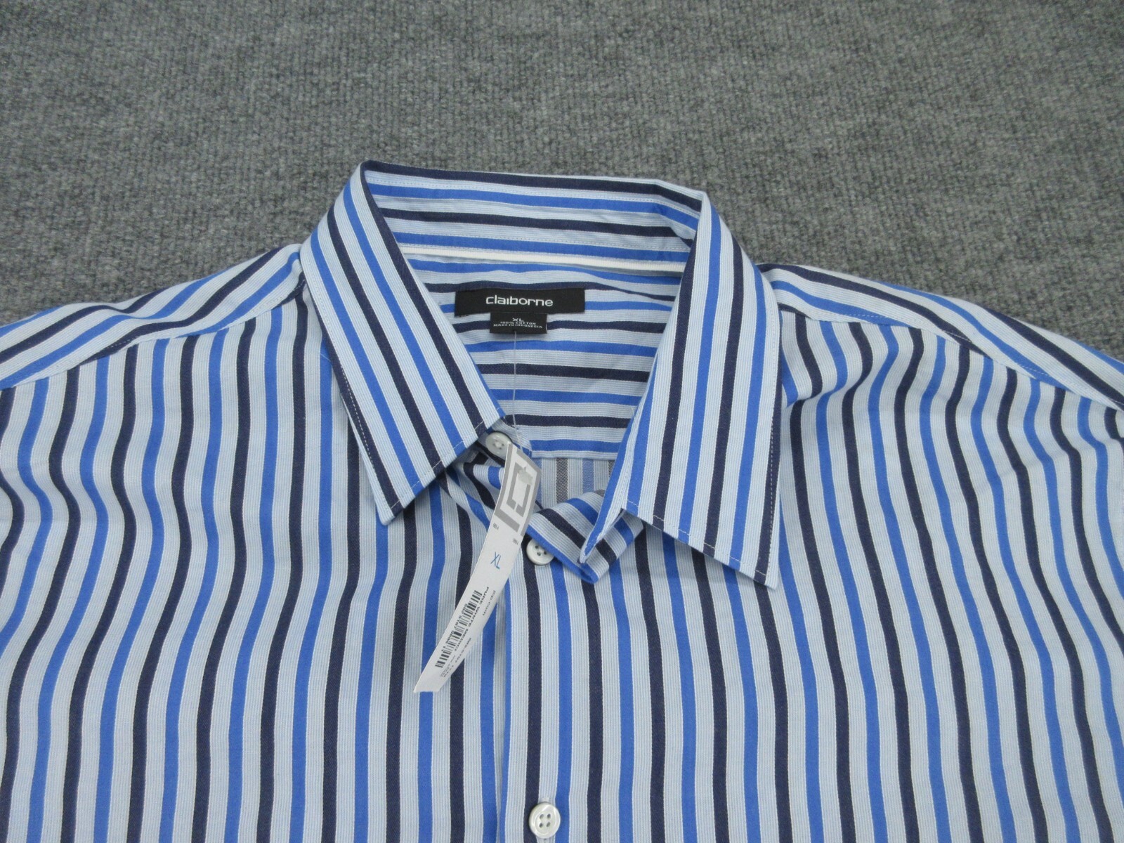 Claiborne Shirt Mens XL Blue Striped Long Sleeve Button Up Casual Extra Lrg NEW