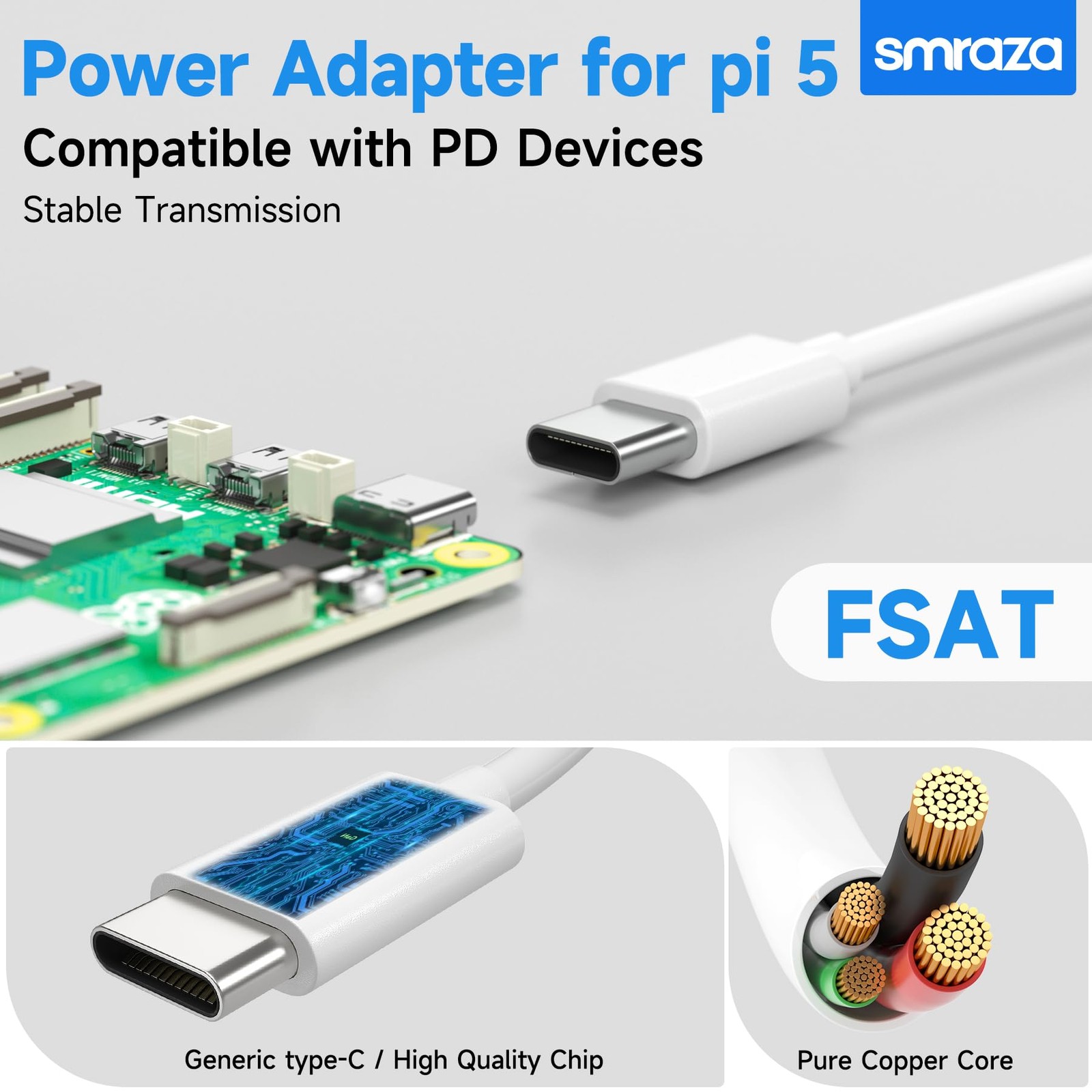 27W USB-Power Supply with Raspberry Pi 5, PD Adapter 5.1V 5A Power Supply -Po...