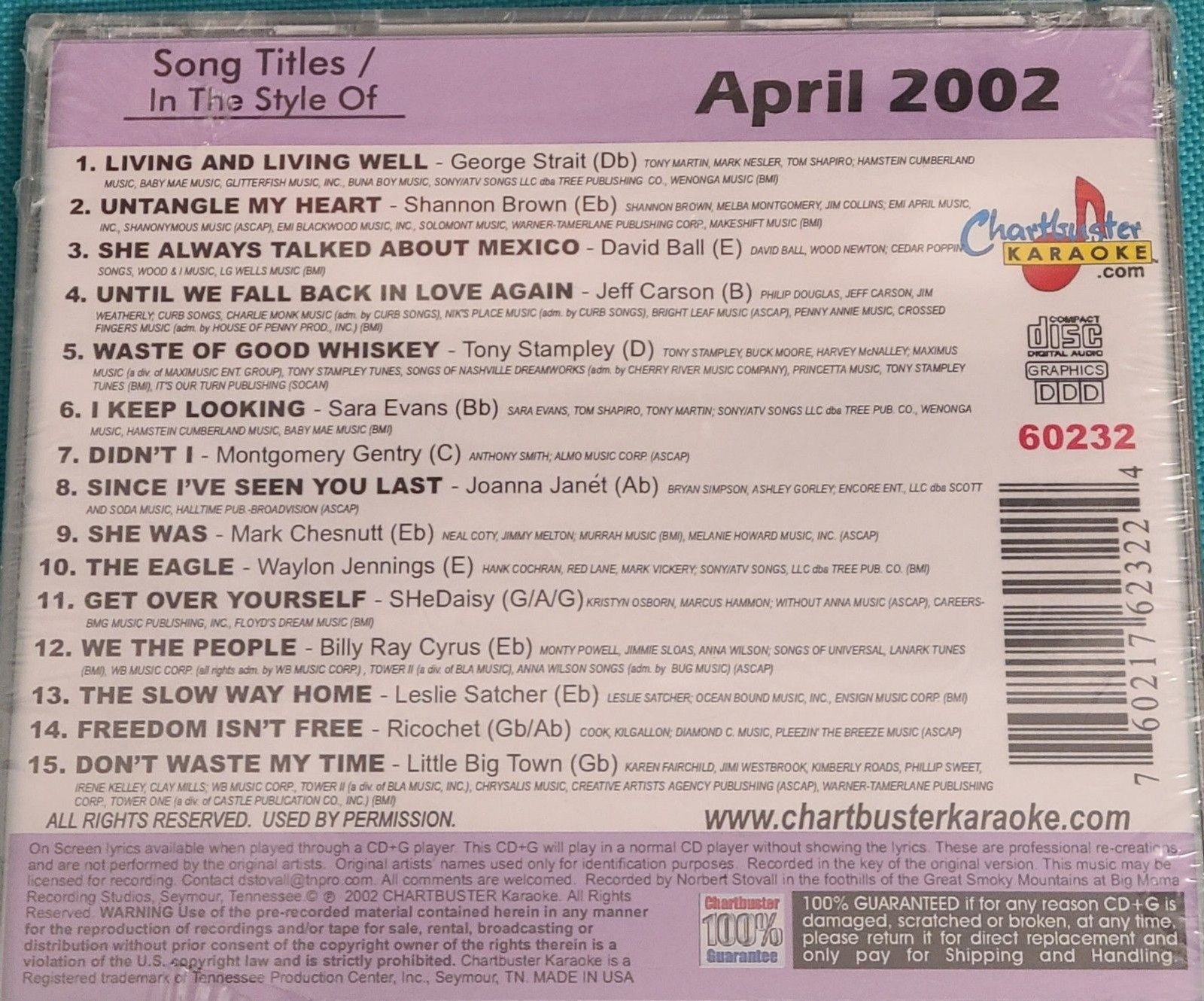 George Strait Sarah Evans Chesnutt Karaoke CDG Chartbuster CD60232 Country 2002