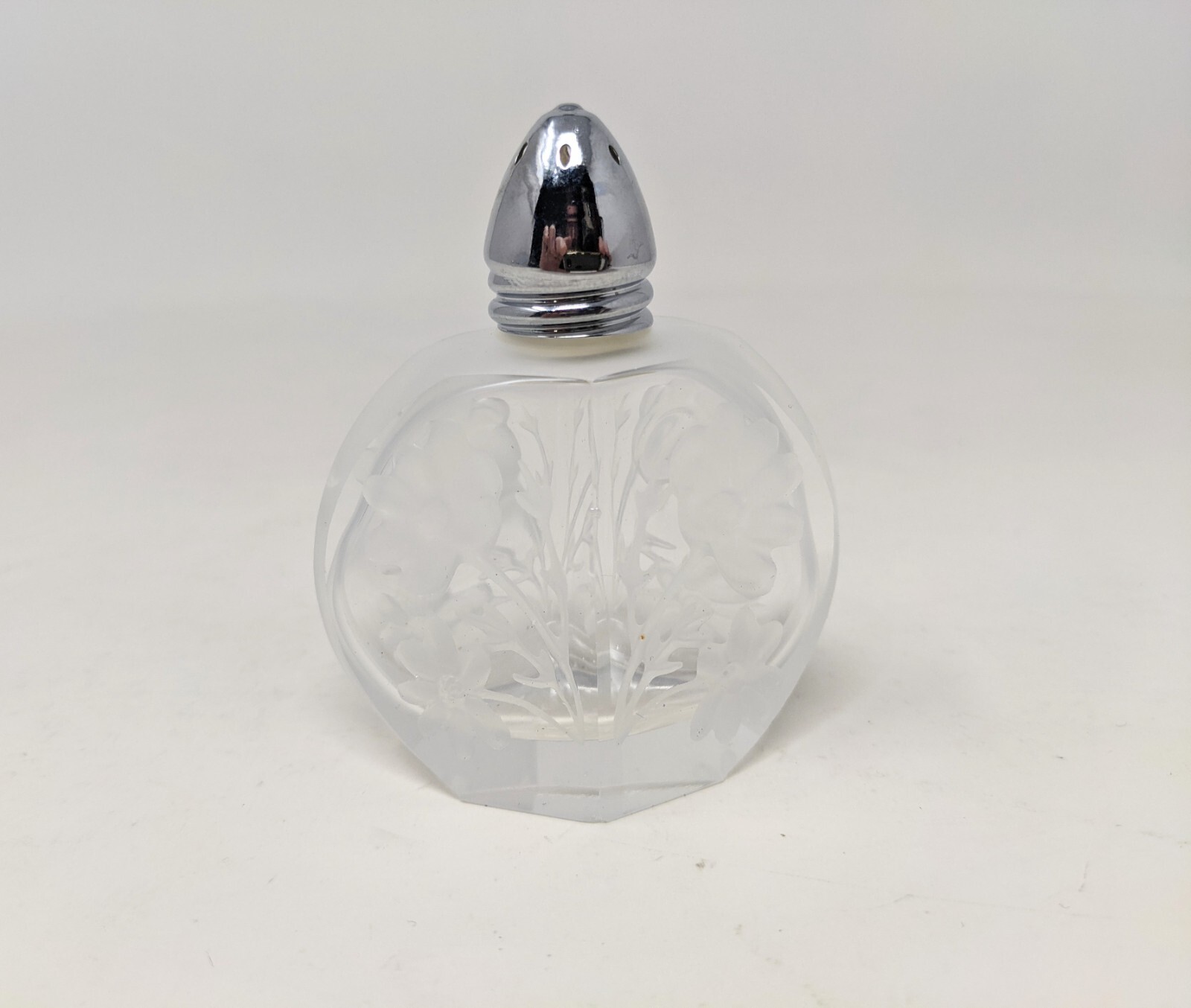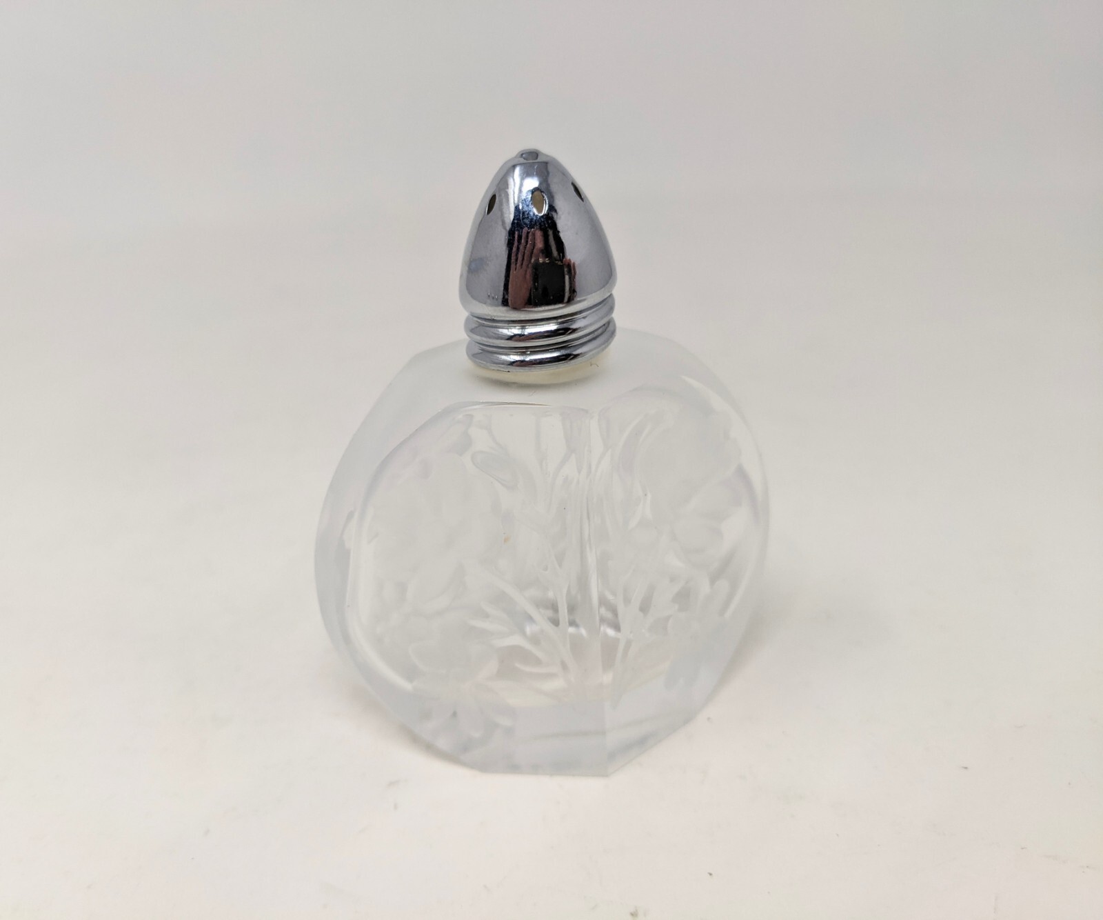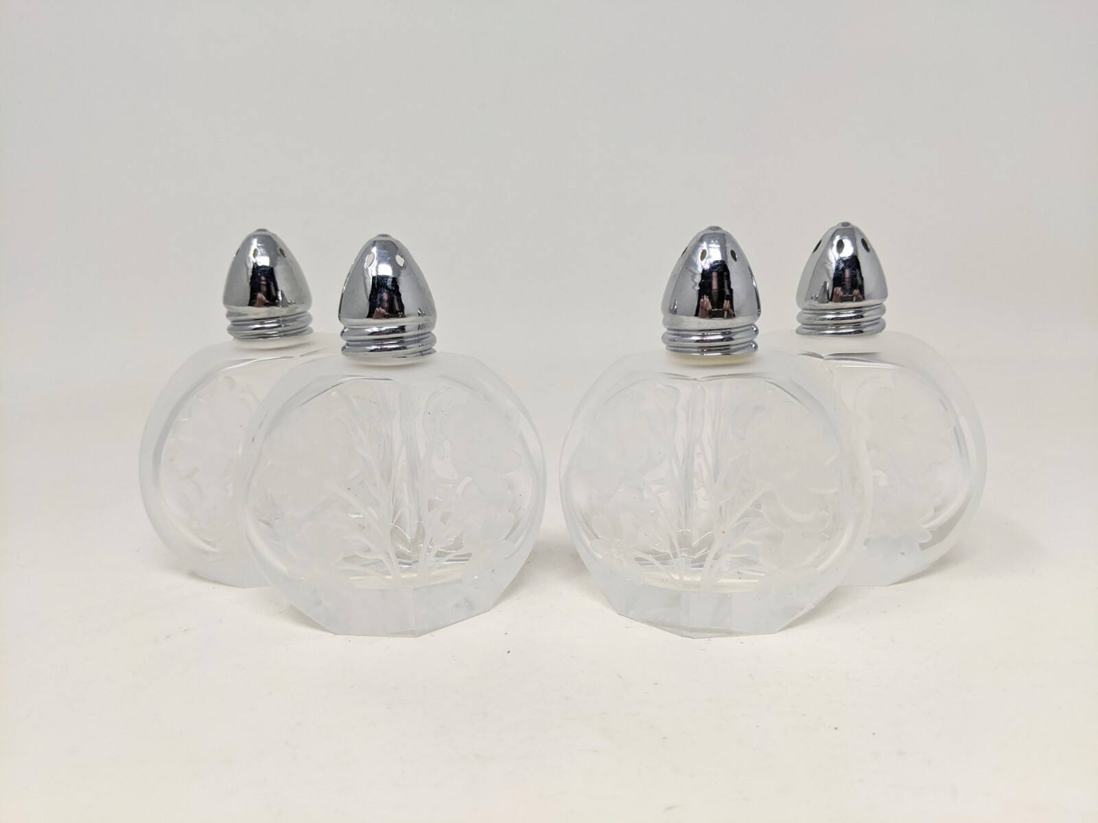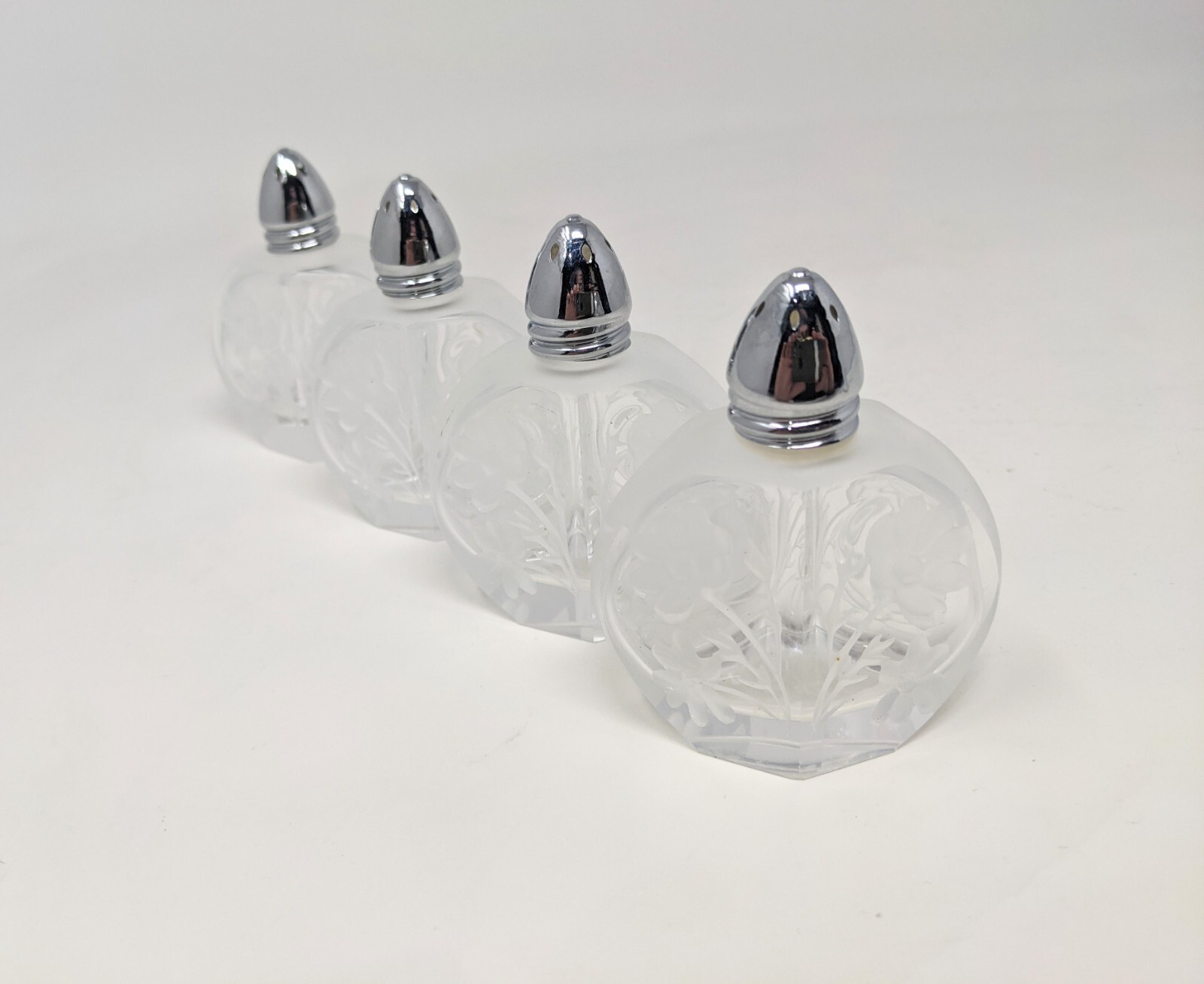 Vintage Floral Etched Glass Salt and Pepper Shaker Set of Four