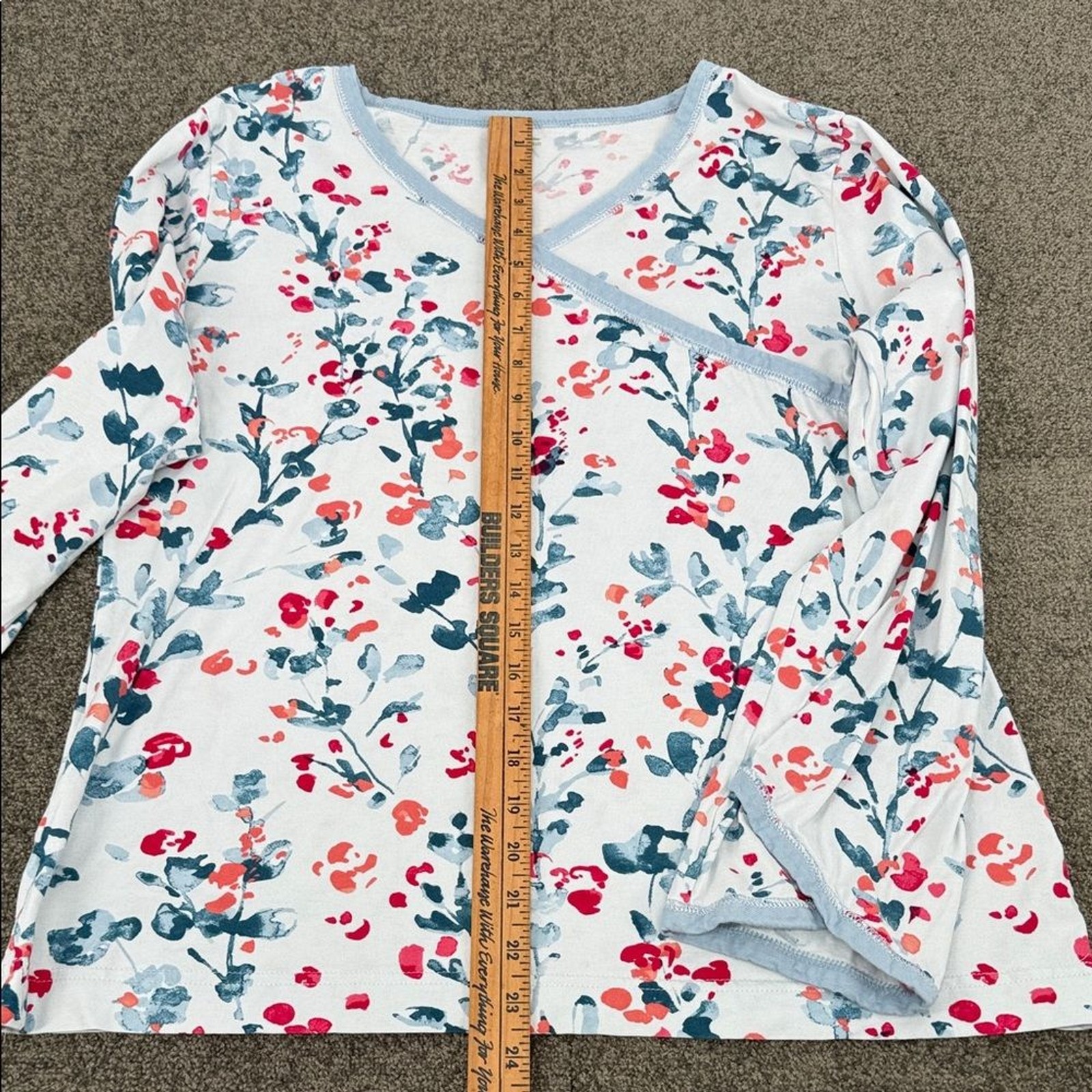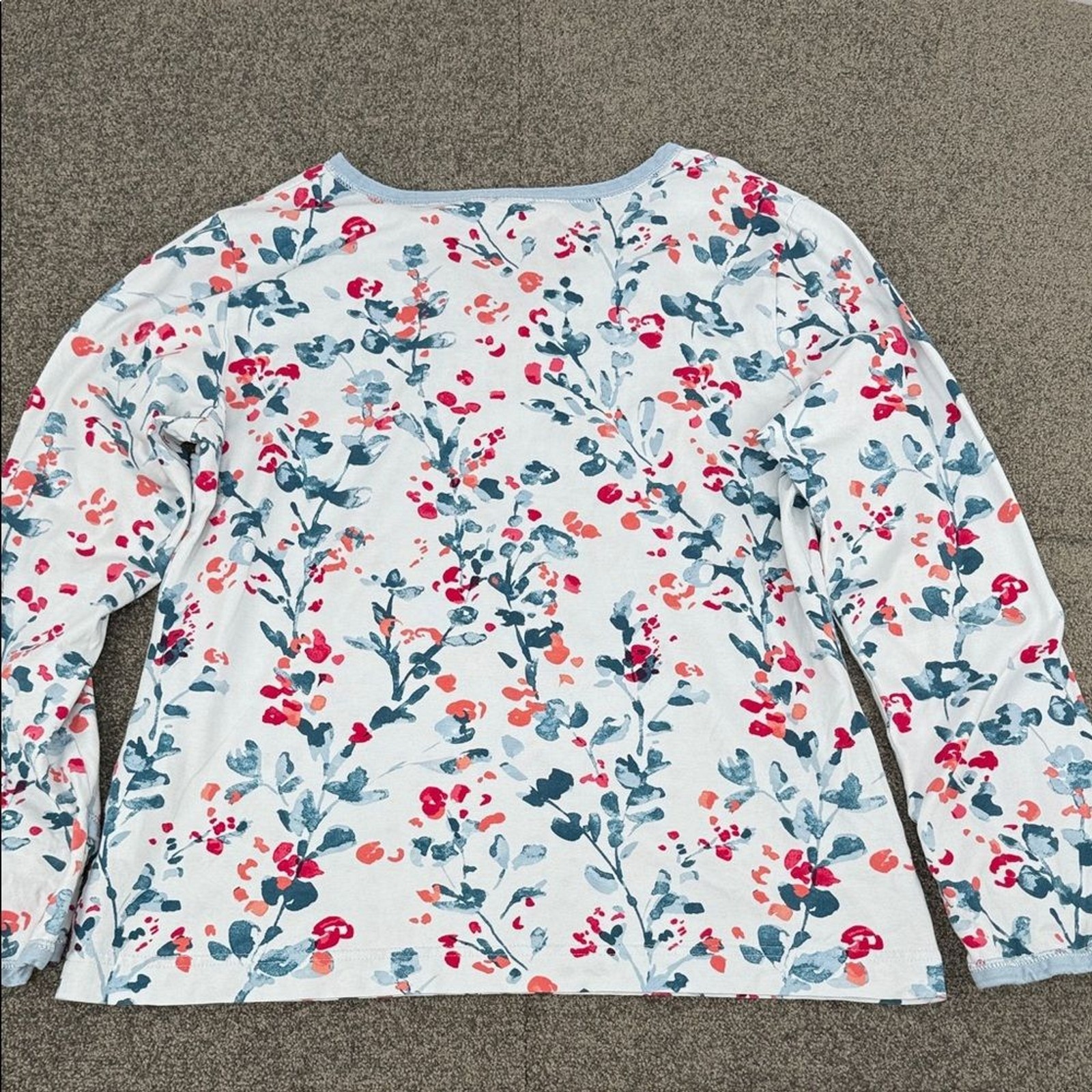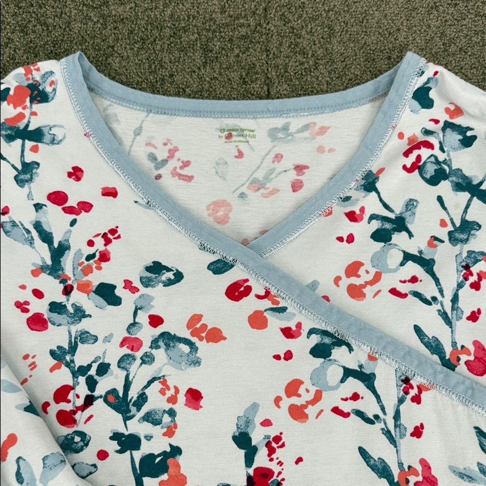 как выглядит Garnett Hill Pajama Top Wm Medium Blue Red Floral Long Sleeve Asian Wrap Shirt фото